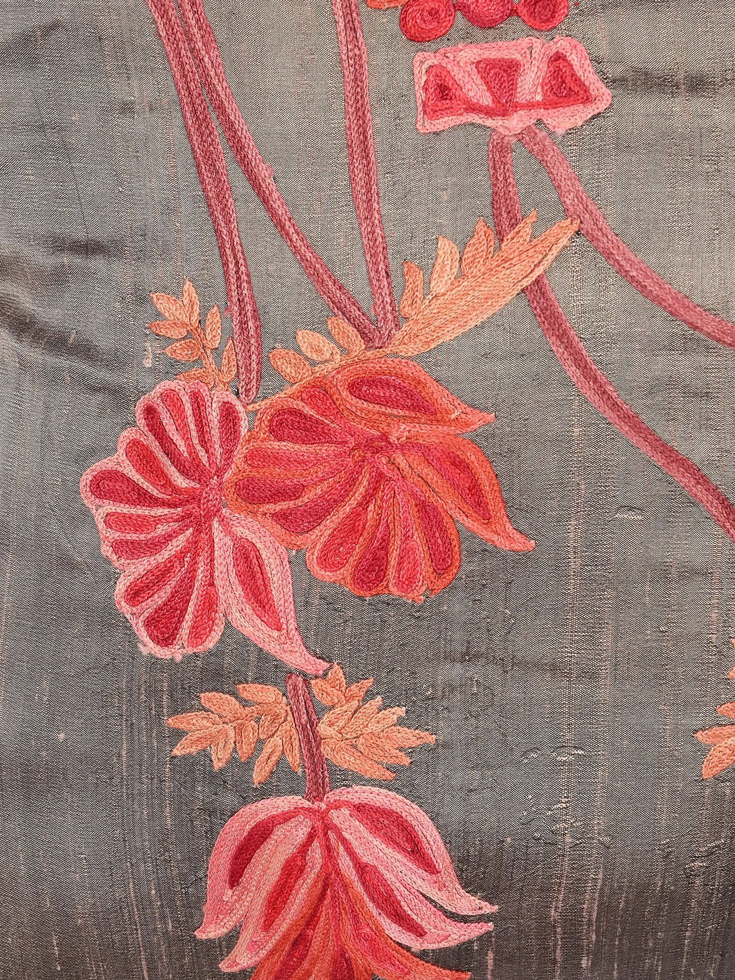 These covers are born from the skilled hands of Kashmiri artisans, who meticulously adorn a luxurious art silk base with the traditional Ari embroidery. Each stitch is a testament to generations of craftsmanship, ensuring a unique and high-quality finish. The rich, flowing motifs are carefully applied, creating a tactile and visual experience that speaks of true dedication.