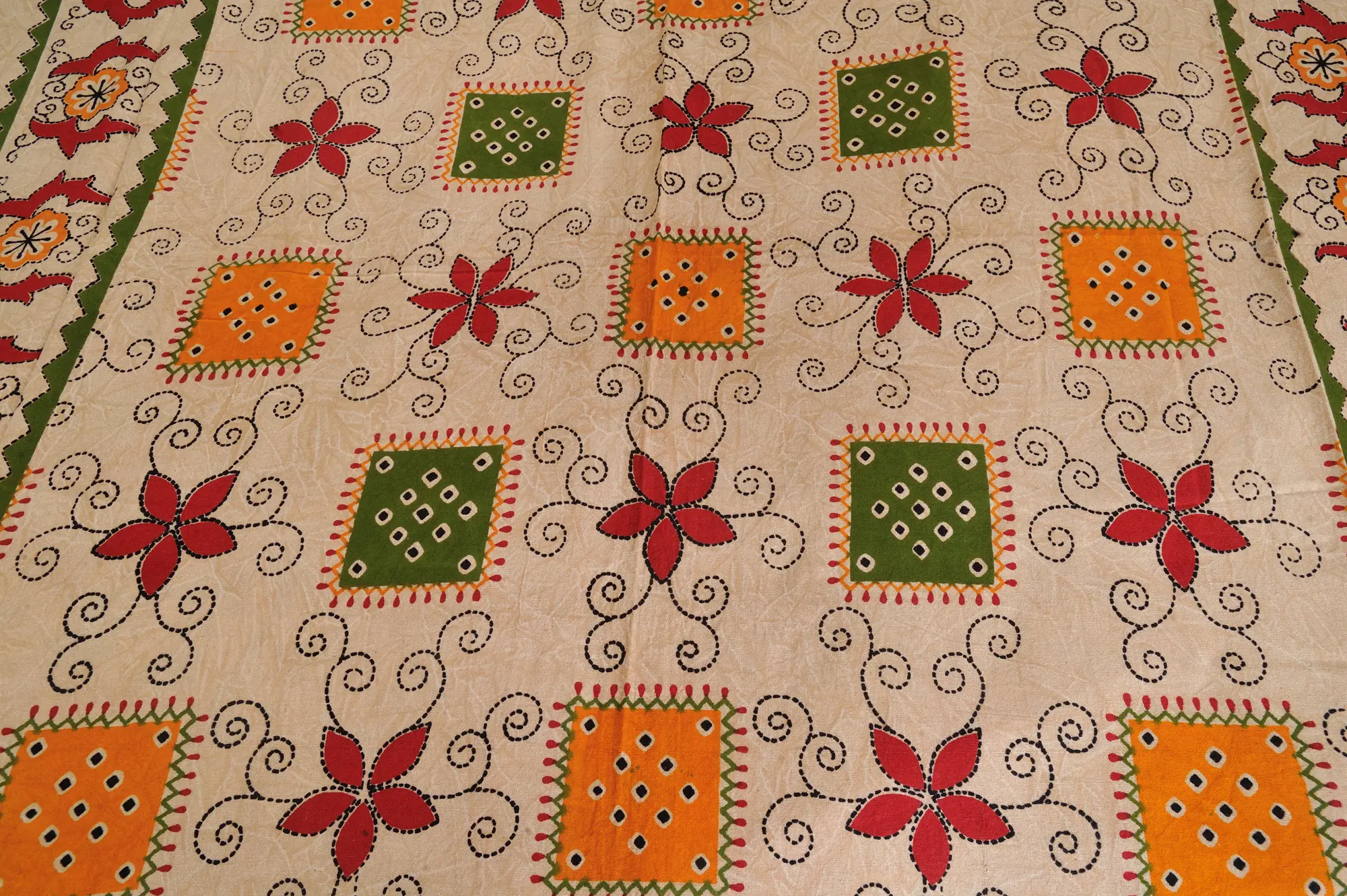 Bedsheet from Pilkhuwa with Block-Printed Elephants