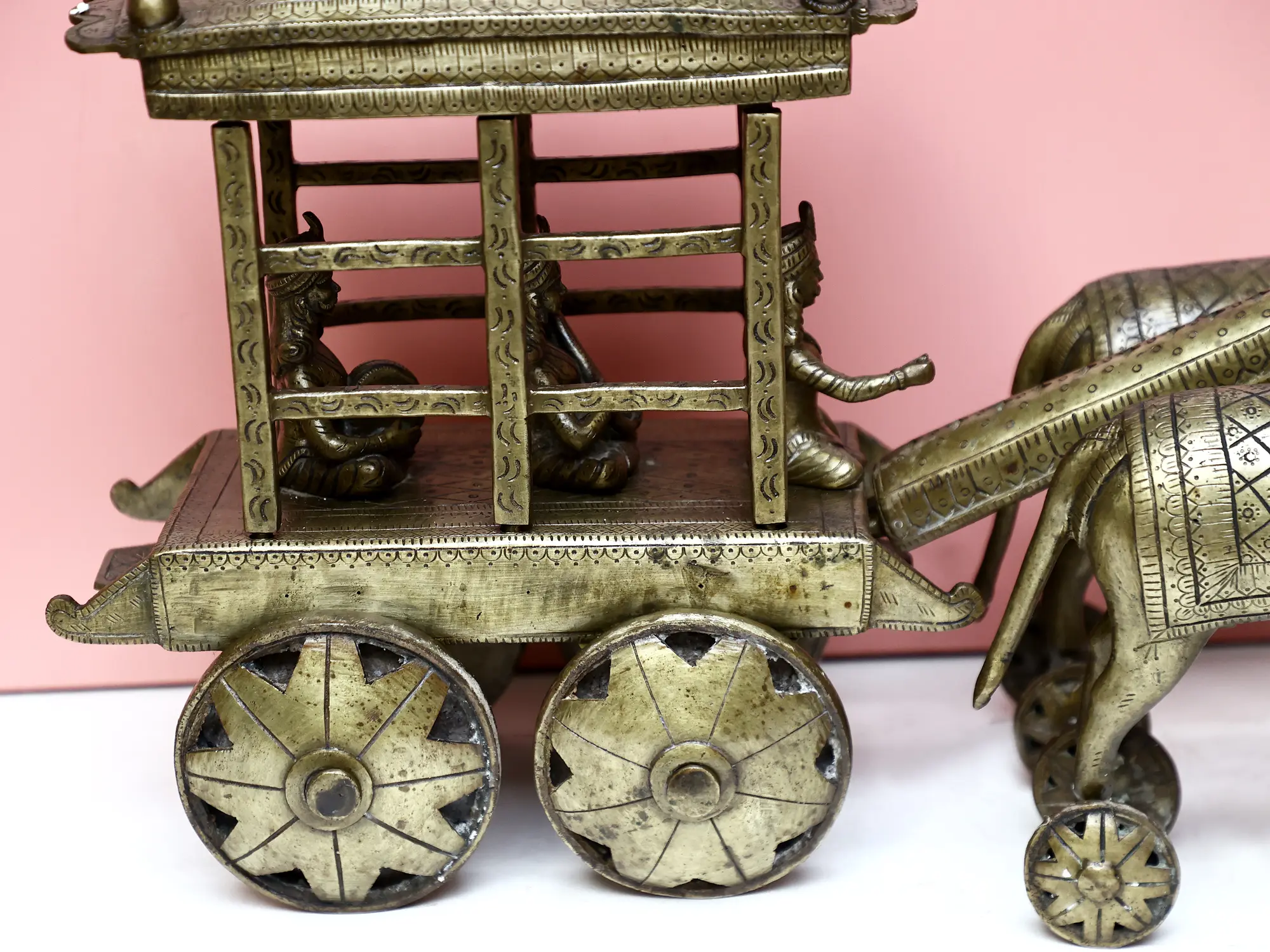7" Brass Bullock Cart with Ganesha - Lakshmi | Carving Table Decor
