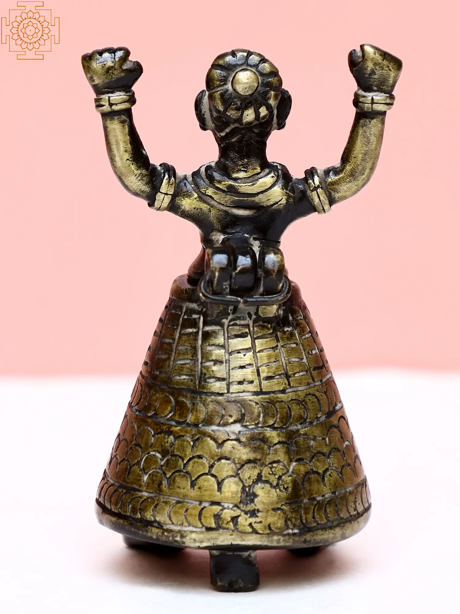 Go beyond the usual for your table decor with this brass dancing lady ink pot, bringing the beauty of folk Indian art to your home decor. Made with brass that is timeless in appeal and tasteful in every setting, the ink pot is embellished with the figure of a dancing woman, wearing a traditional ghaghra skirt, ornaments, and juda (hairdo), with her hands raised, adding a sense of movement to the miniature artwork. The torso of the lady serves as the lid of the ink pot, while her lower body is the ink container.