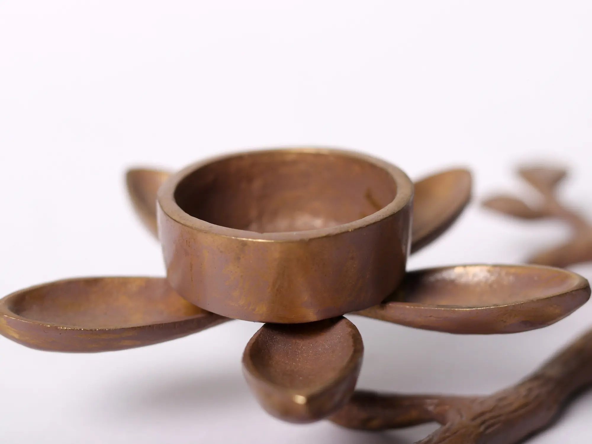 This Candle Stand depicting a flower on a branch of tree, combines nature-inspired beauty with functional elegance. This charming sculpture is reminiscent of a branch decked with numerous blooming flowers, producing a whimsical and appealing sight. The flower, which has been handcrafted with beautiful embellishments, function as individual candle holders, allowing for a warm and enchanting illumination. Any setting will benefit from the branch-like structure's organic beauty and sense of natural harmony. This candle holder transforms into a magnificent centrepiece, adding a tranquil mood and a touch of floral beauty to the environment. It mixes the delicate grace of flowers with the practicality of candles to create an enthralling and aesthetic experience.