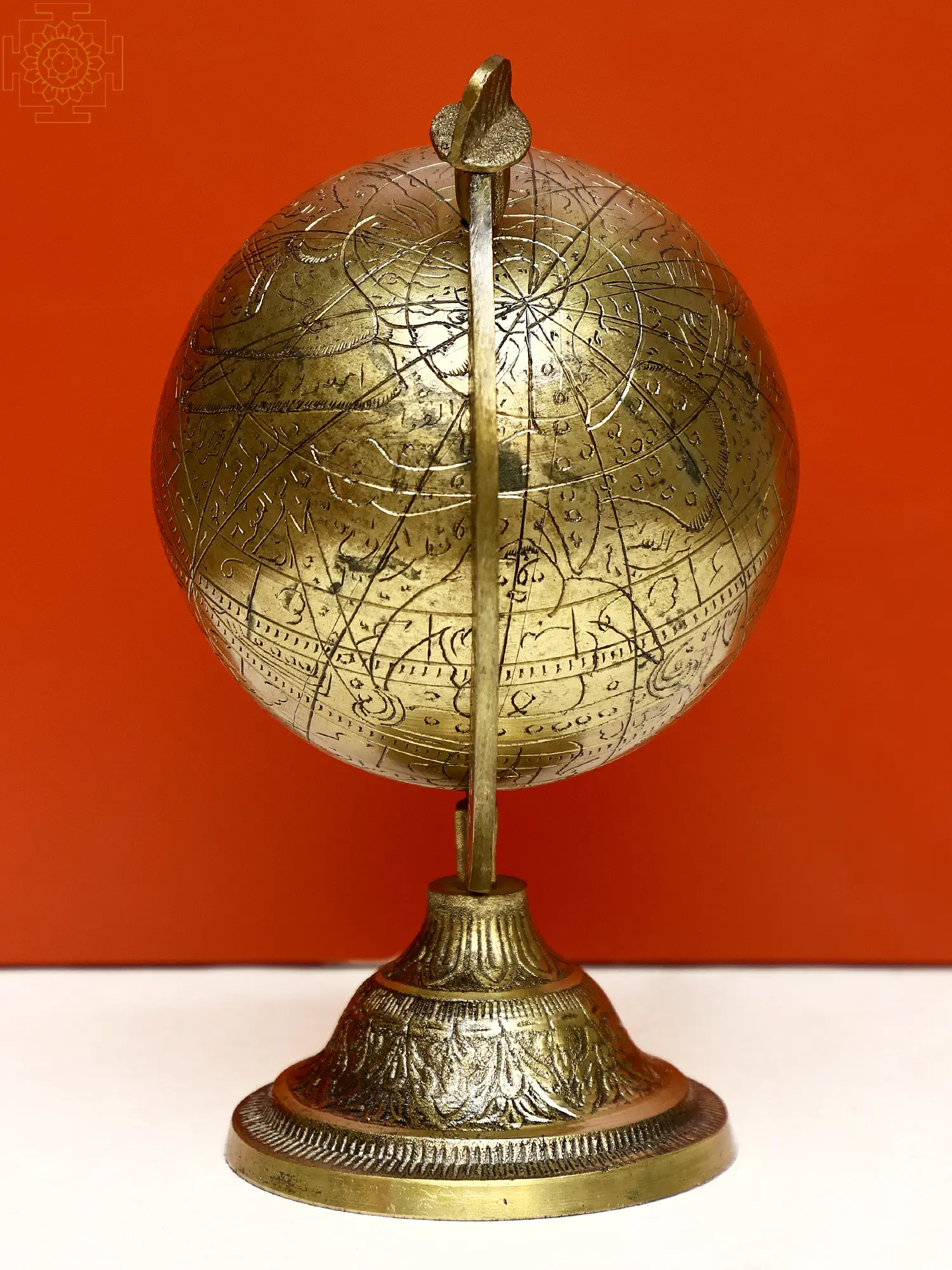 This exquisite brass globe is more than just a decorative item; it's a testament to historical craftsmanship and the enduring fascination with the cosmos. Crafted from high-quality brass, its warm, rich hue and subtle patina evoke a sense of heritage and timeless elegance. The intricate details etched across its surface are a captivating blend of geographical representation and ornate Islamic calligraphy, transforming a functional concept into a piece of art.