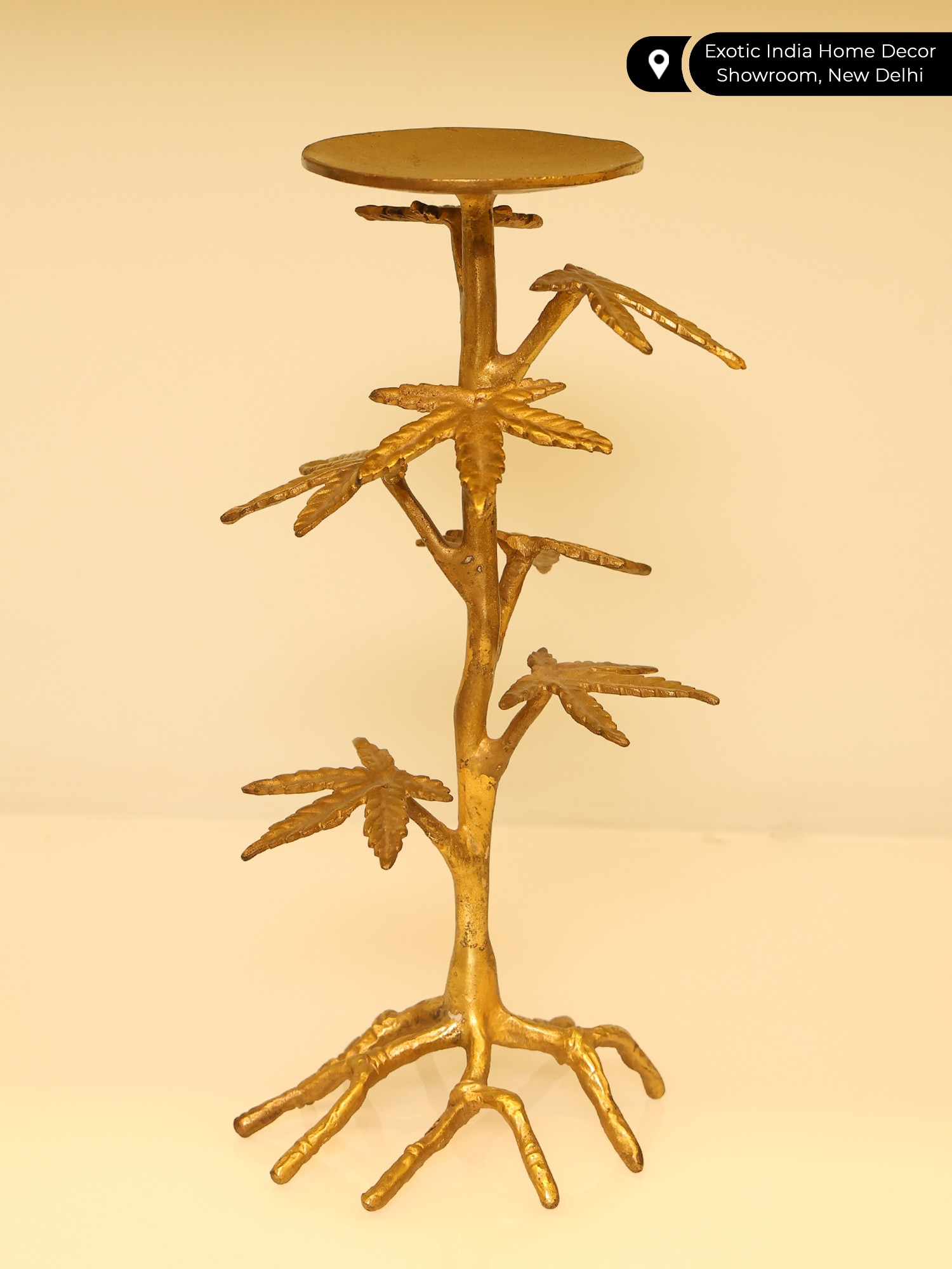 Trees are the most beautiful creation of God. Their selfless service to humankind has been honored in many ways. The image of trees has been infused with utility objects, giving the object a sacred symbolism and increasing beauty. This Tree Candle Stand is a unique tribute to the trees. Crafted with meticulous detail, it emulates the form of a tree, with small leaves attached to the stock and a candle holder placed on top. The design celebrates the organic beauty of wood while providing a functional and decorative piece. When adorned with lit candles, it transforms into a captivating centerpiece, casting a warm, ambient glow. This candle stand seamlessly combines aesthetics and utility, bringing the enchantment of the outdoors into your living space.