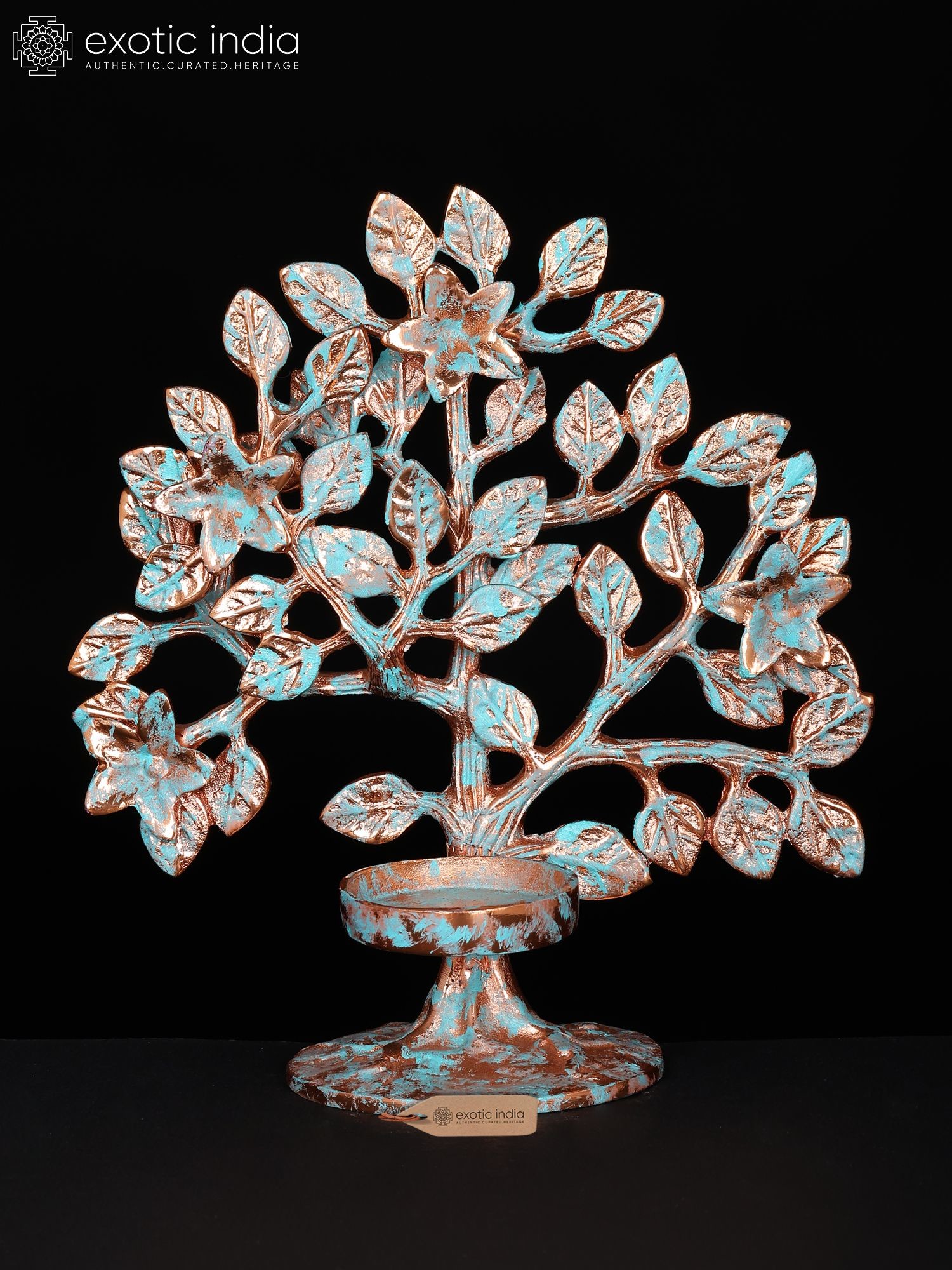 28" Brass Tree of Life with Wooden Candle Stand and Dangling Bells | Decorative Showpiece