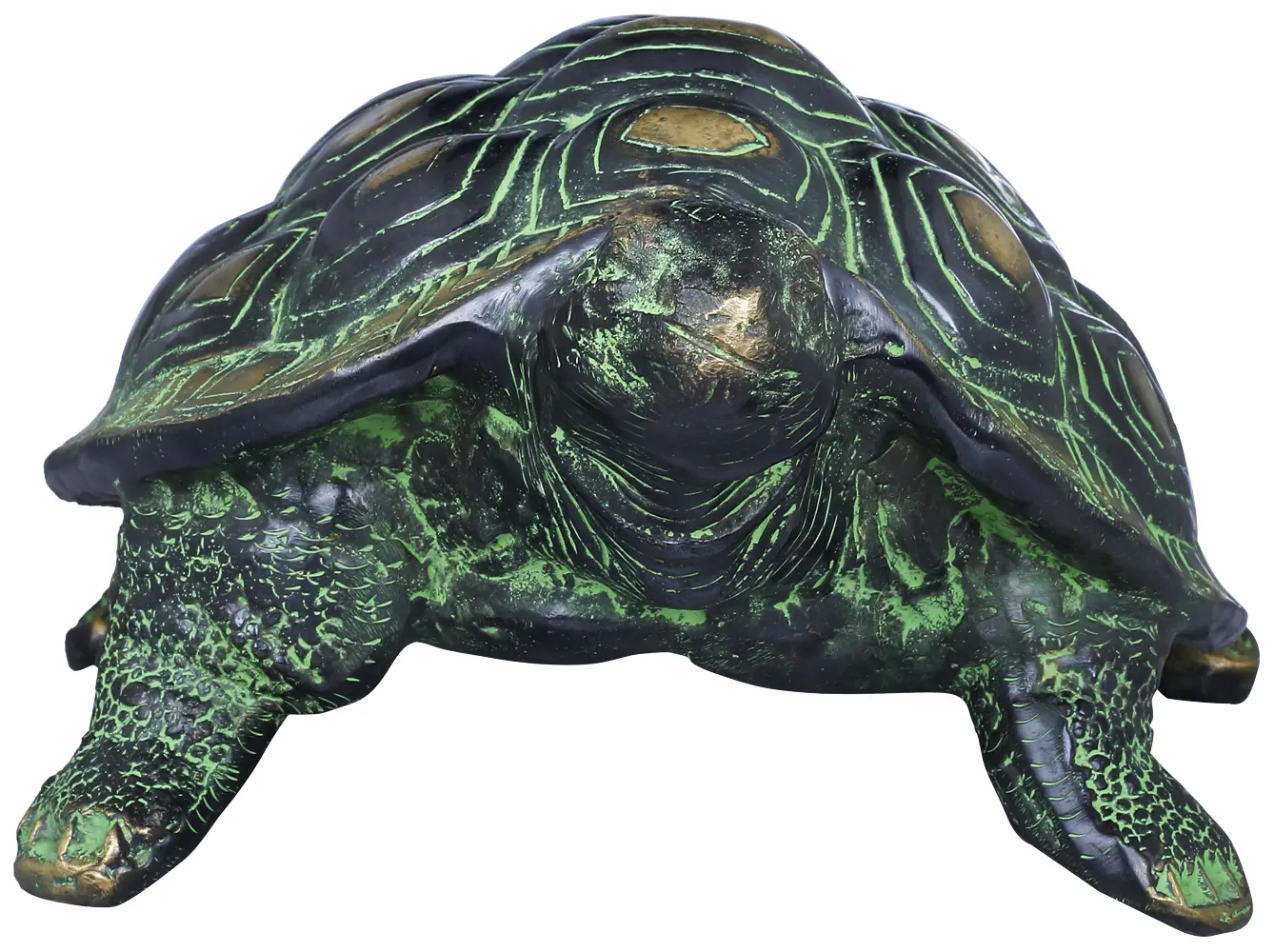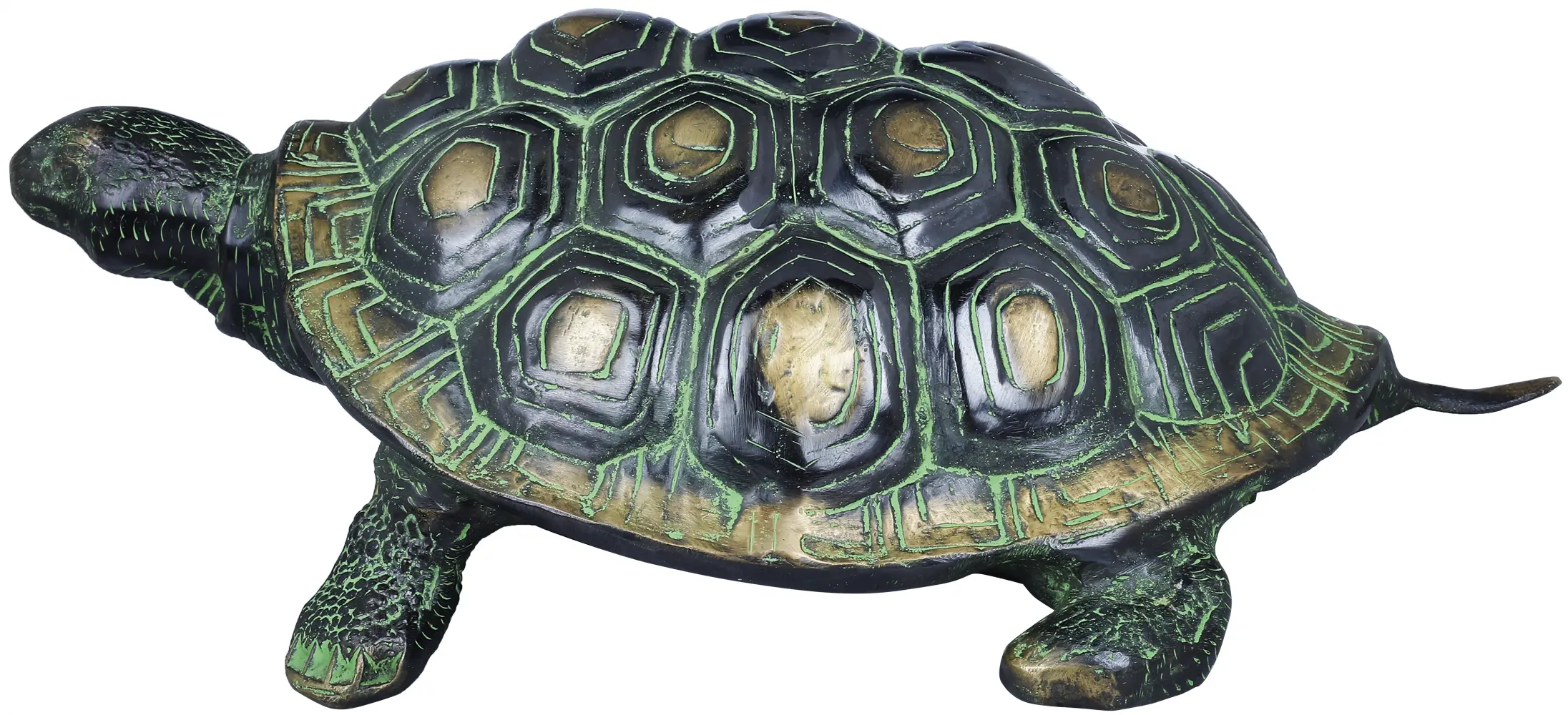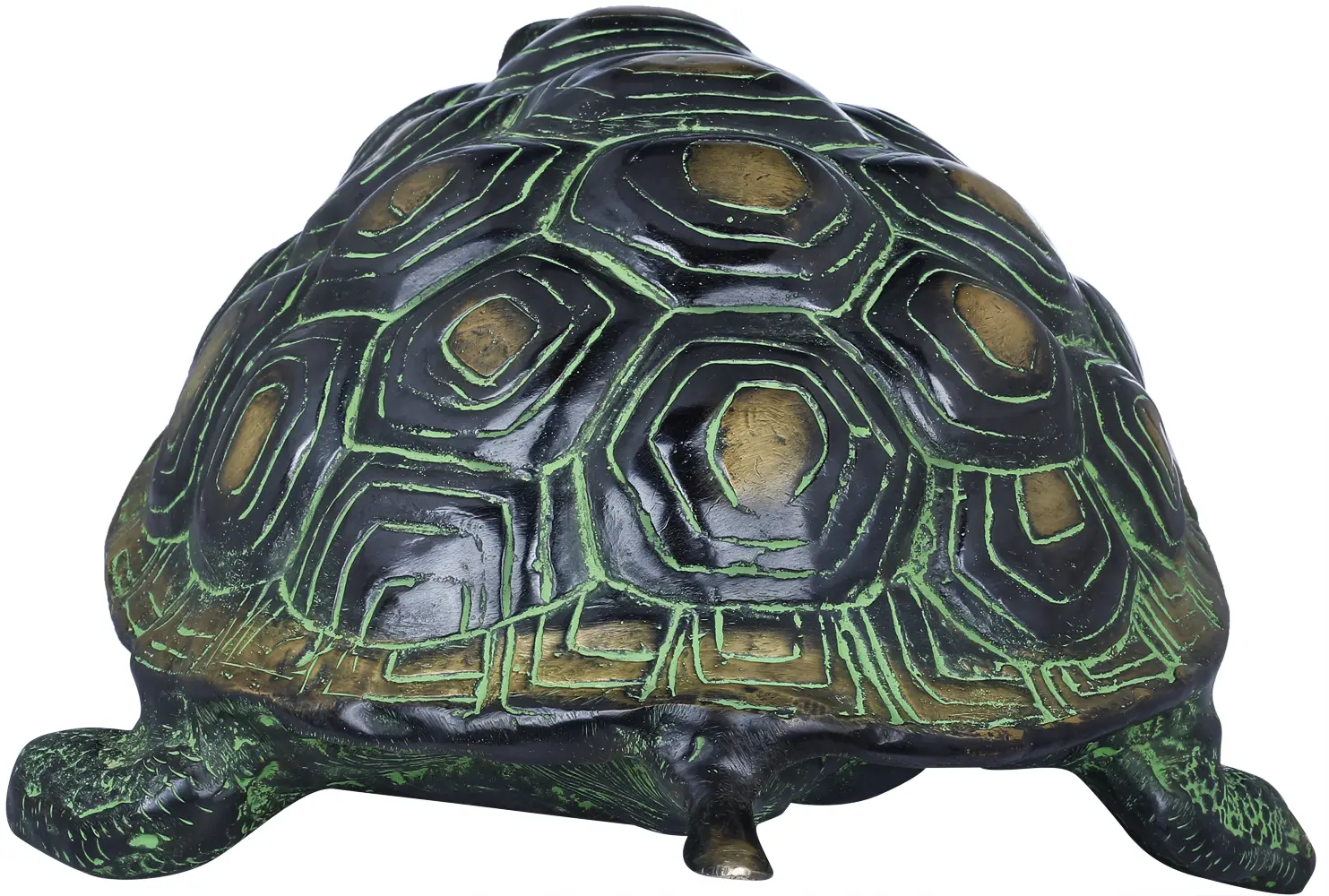 This charming Brass tortoise statue is elegantly covered by an outer layer of individually engraved scoots in lovely deep blue and golden shades. Its round-dome-like outer skeleton shell (including vertebral, nuchal, coastal, and pygal), would protect the tortoise from injury. The smiling heavy Tortoise standing on its club-like two forelegs and 'elephantine' hind legs. The second hind leg and the tail are hidden. The round bright eyes and nose on its big and wide mouth attached to its thick neck adds extra beauty. The vastu tortoise would invite positive energy to your home.