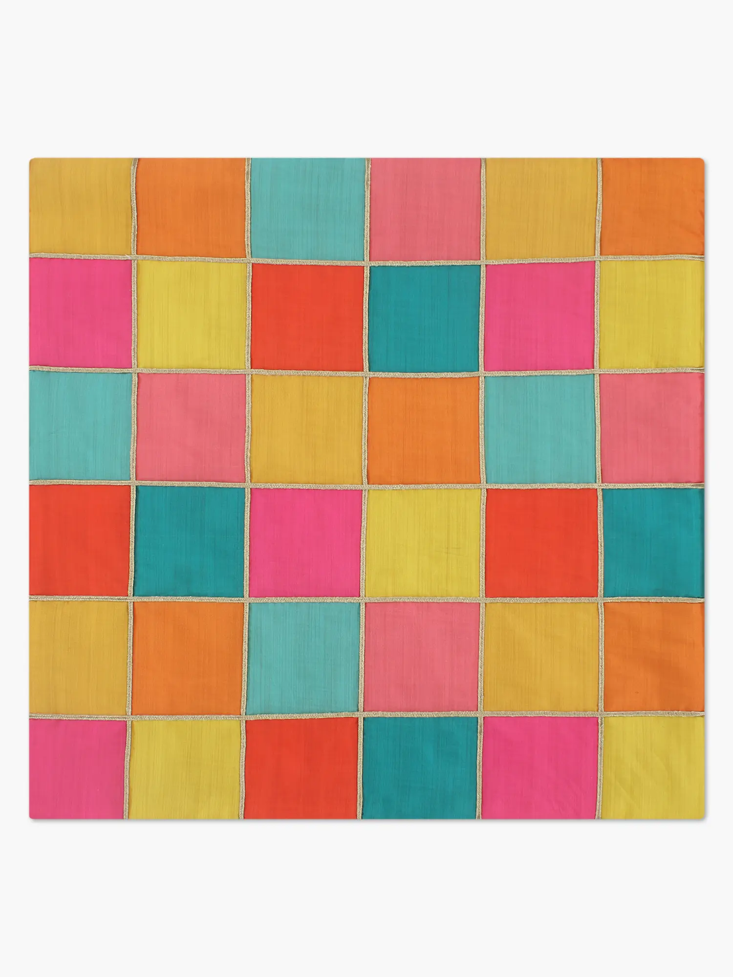 This Check Pattern Satin Cushion Cover with Zari Patti is a retro-inspired home decor gem crafted from luxurious satin. This cover draws inspiration from classic check patterns, creating a nostalgic and timeless appeal. The incorporation of Zari Patti, with its metallic threadwork, adds a touch of vintage glamour and opulence.