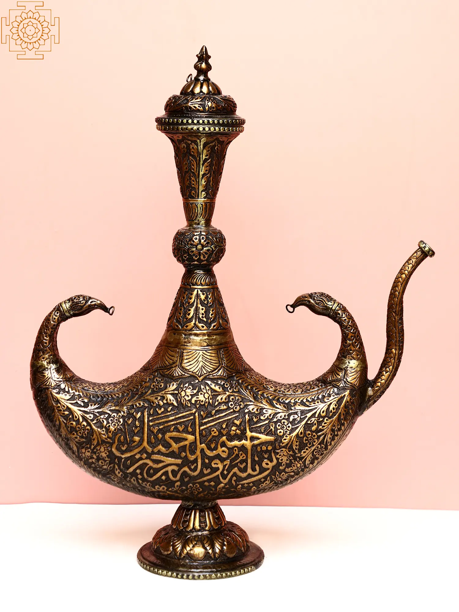While its origins lie in traditional water vessels, this Surahi transcends its functional purpose to become a magnificent decorative accent. Place it as a captivating centerpiece on a dining table, a statement piece on a mantelpiece, or a striking addition to your display cabinet. Its generous size ensures it will command attention, while its artistic merit makes it a conversation starter. This piece is perfect for those who appreciate fine craftsmanship, Islamic art, or simply seek to infuse their living space with a touch of historical grandeur and cultural richness. It makes for an unforgettable gift for any occasion, embodying thoughtfulness and exceptional taste.