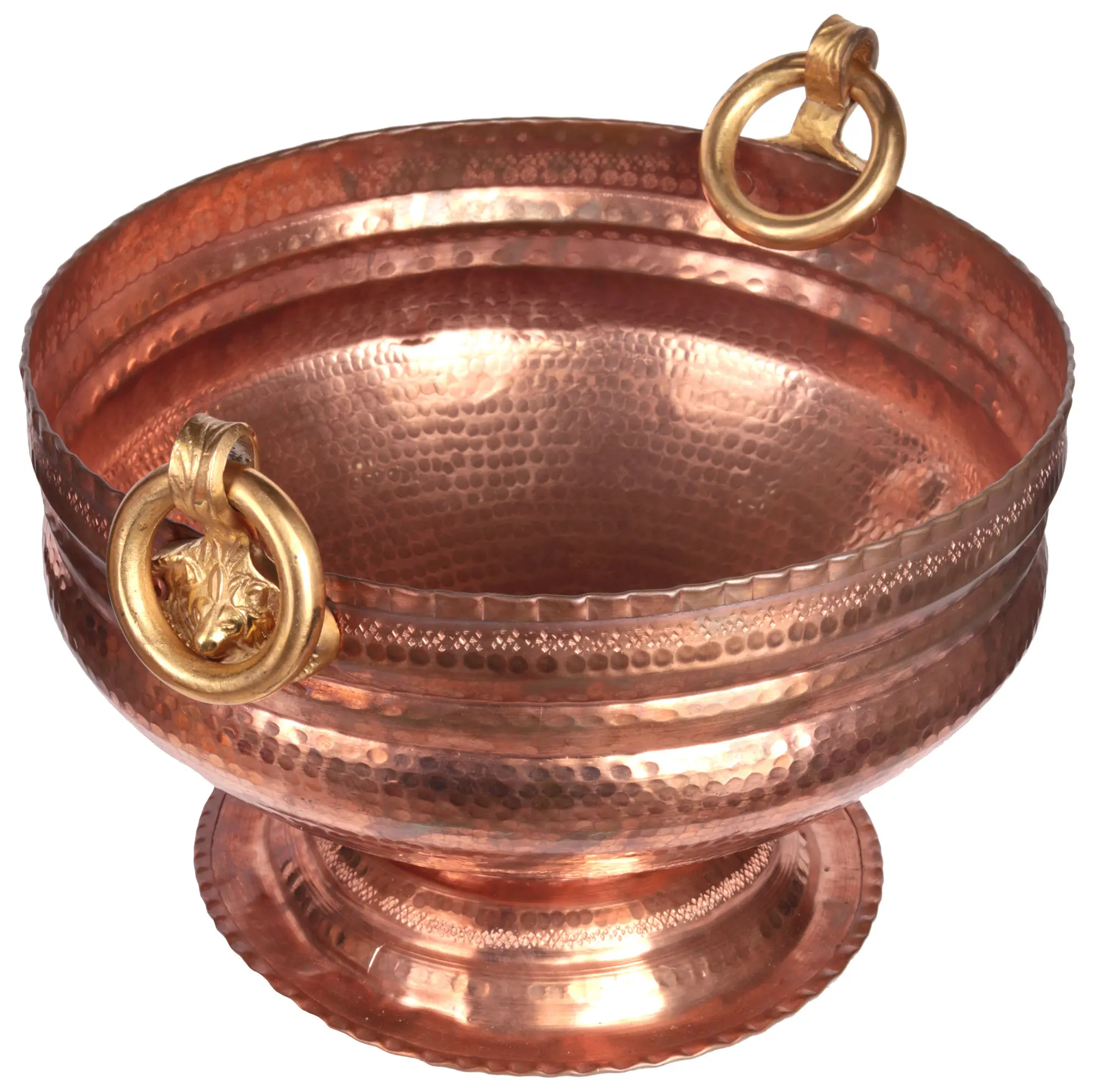 Copper is utilized as a covering for different home décor objects because it gives the home a rustic and wealthy appearance. Copper, especially its alloy brass, is the most adaptable metal for creating handcrafted design products that complement both classic and modern home décor trends. This copper Urli features traditional hammering patterns on its body, this technique is considered one of the oldest metal crafting techniques. The usual dots at equal intervals give this item a lovely appearance. It has two golden handles that add a distinct depth to the design. Apart from being visually appealing, the artwork also has significant Vaastu advantages. Including this item in the home design will undoubtedly improve the mood of the family.