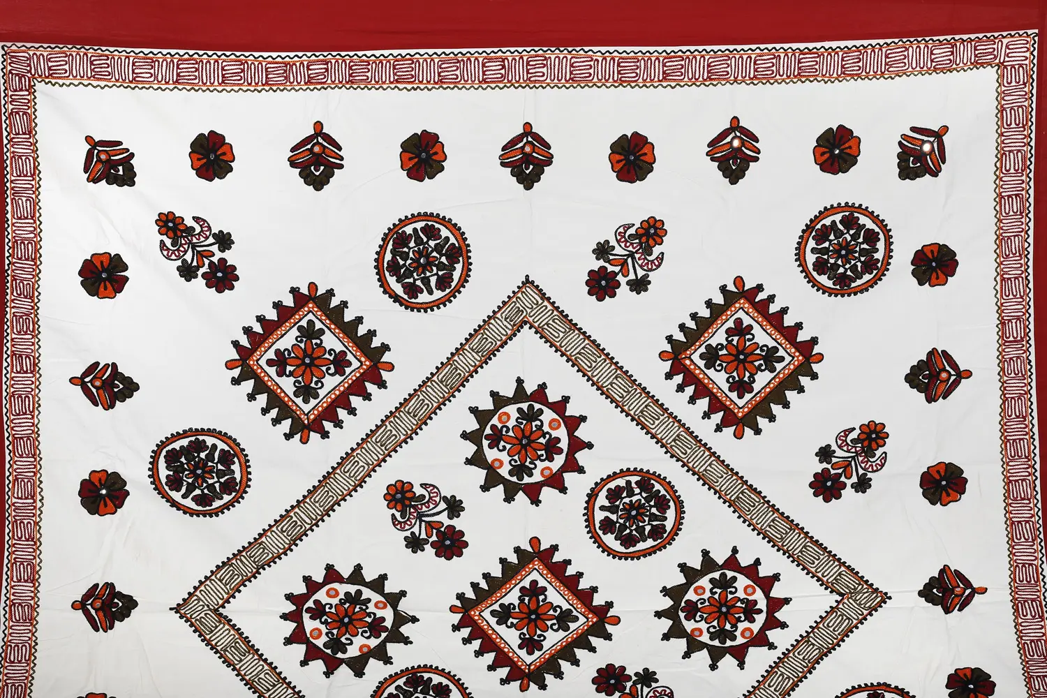 Gujarati embroidery is the greatest heritage embroidery craft in India, because of its impeccable designs created out of a plenty of cross stitches and the use of vibrant and most popularly used color combination of red, green and orange. The bed cover shown here will form an alluring beauty, when spread straight and crisp on your bed. Red and white has always been the most demanding color duo; the vibrancy of red is perfectly balanced by the calmness and soothe of white.