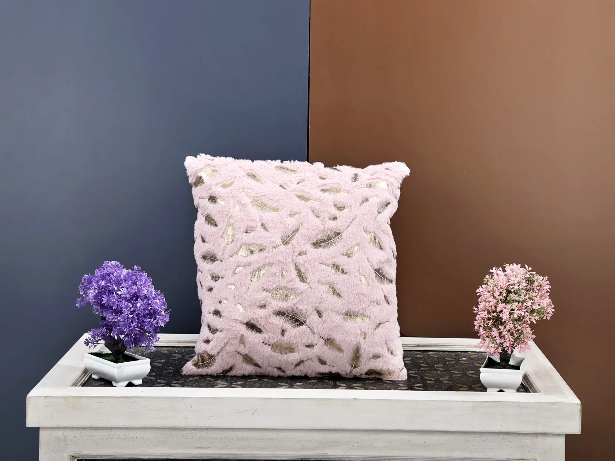 The Cushion Cover offers a touch of luxury and comfort. Printed with golden feathers and enveloped in faux fur, this cover transforms your cushions into plush clouds of opulence. It serves both as a visual delight and a tactile sensation, elevating your décor and enhancing your comfort. Use it to adorn your sofas or beds, and experience the lavish embrace of golden elegance. Sink into its inviting softness and add a touch of luxury to your living spaces.