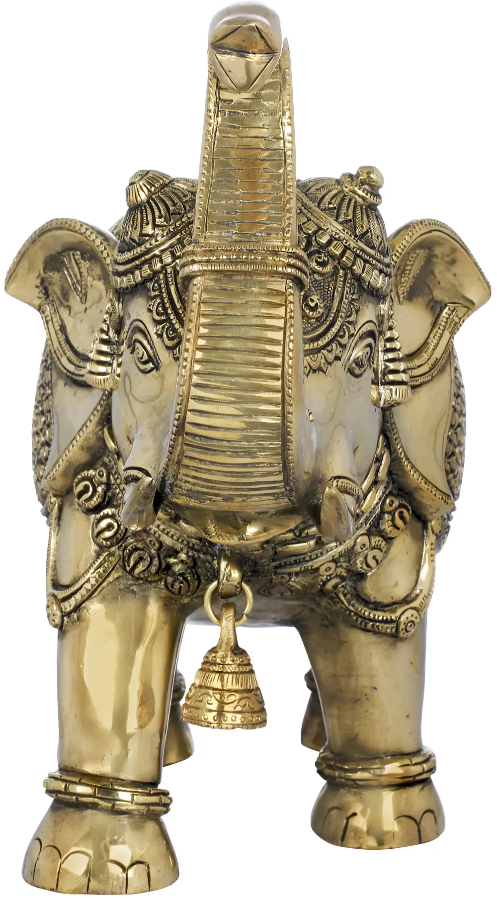 Decorated Elephant Brass Figurine with Bell and Upraised Trunk