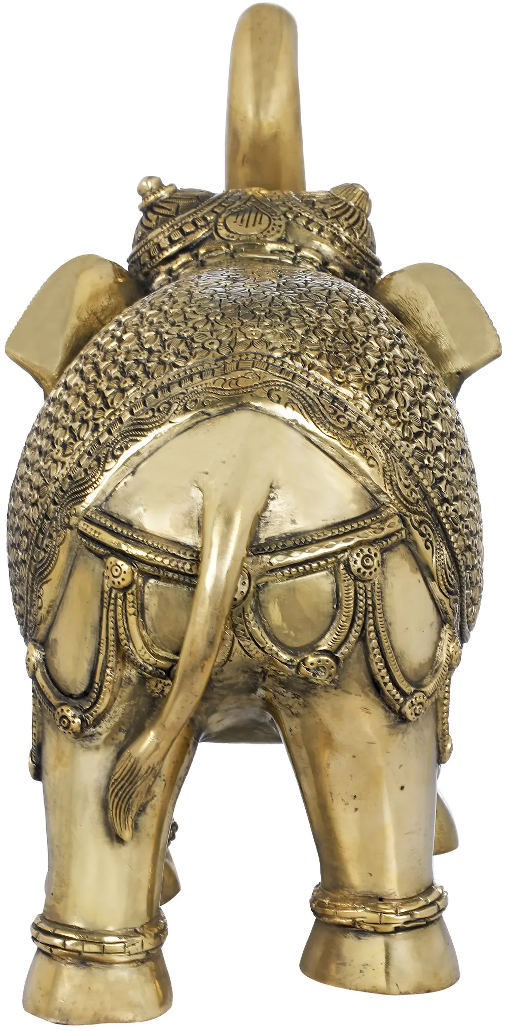 Elephants represent grandeur and victory. Their massive construction has been extremely effective in squeezing the life out of the enemy force. Elephants are also revered because of their link with Lord Ganesha. According to Vastu, an elephant with its trunk elevated symbolizes success, and animal statues in this position are considered desirable decorating pieces. This Fully Decorated Elephant Statue in Brass is a celestial messenger adorned with auspicious charm.
