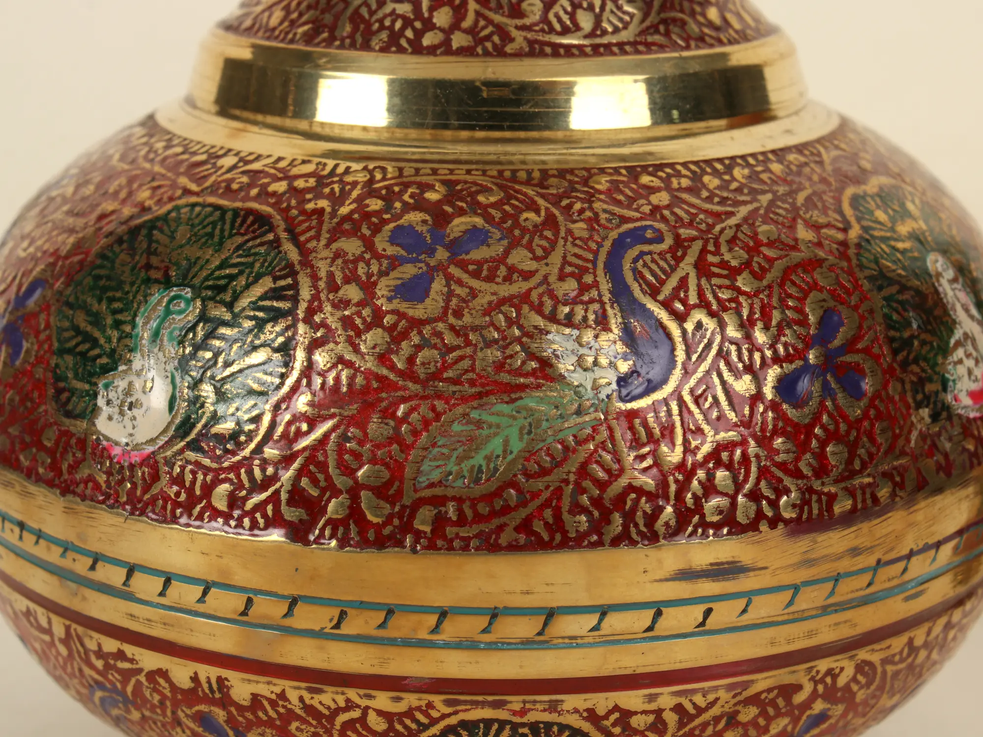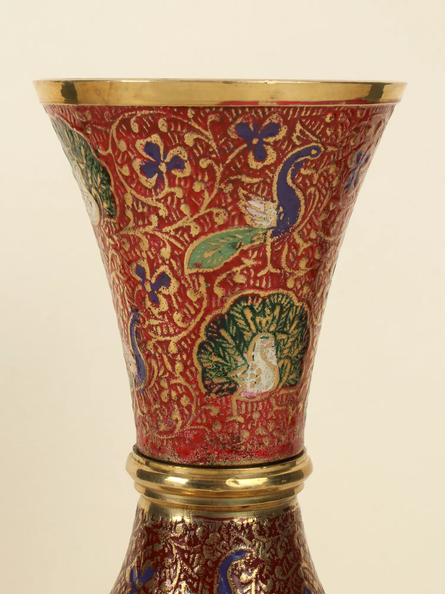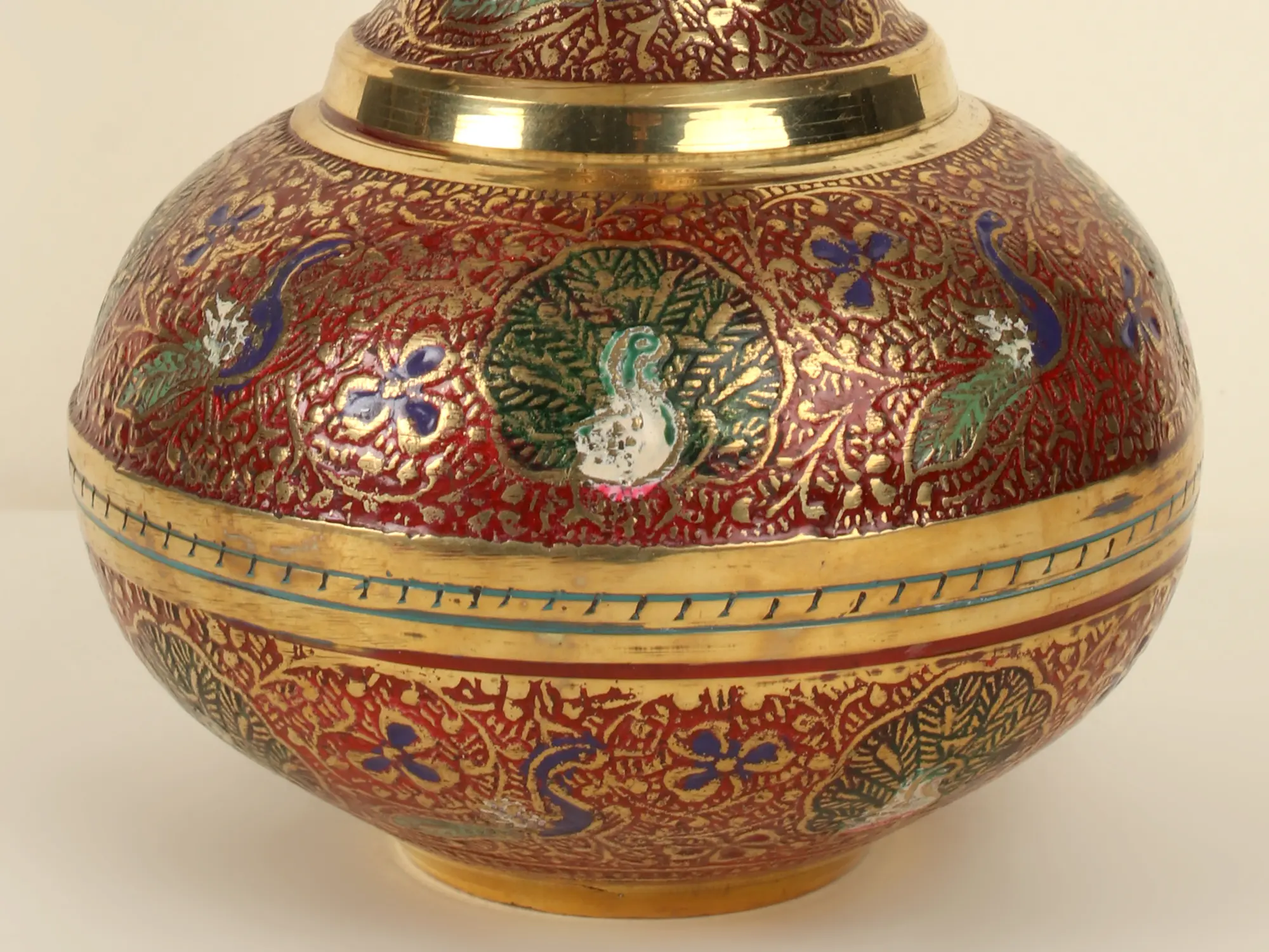 True-Red Banarasi Cushion Cover with Hand-woven Flower Vase