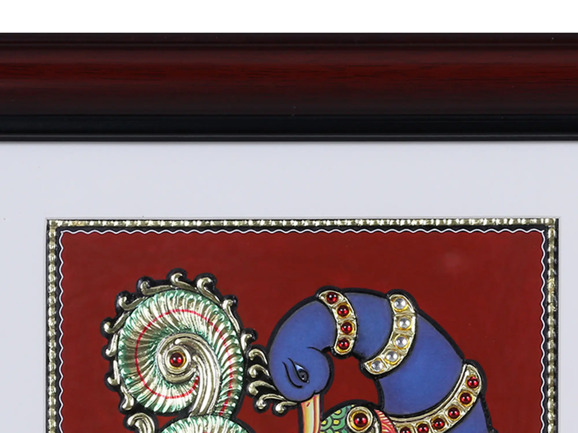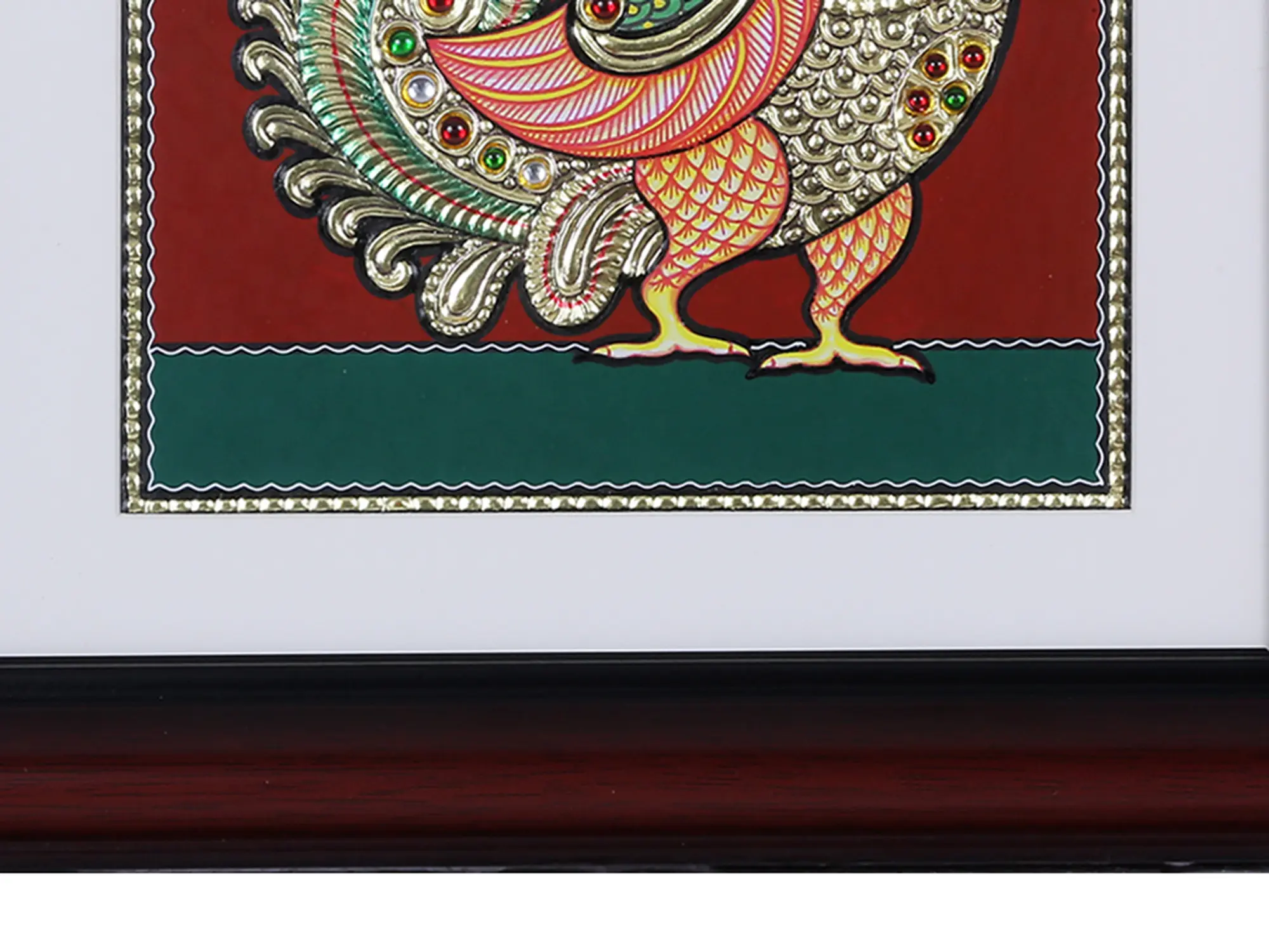 Features a majestic peacock rendered in the traditional Tanjore art style.