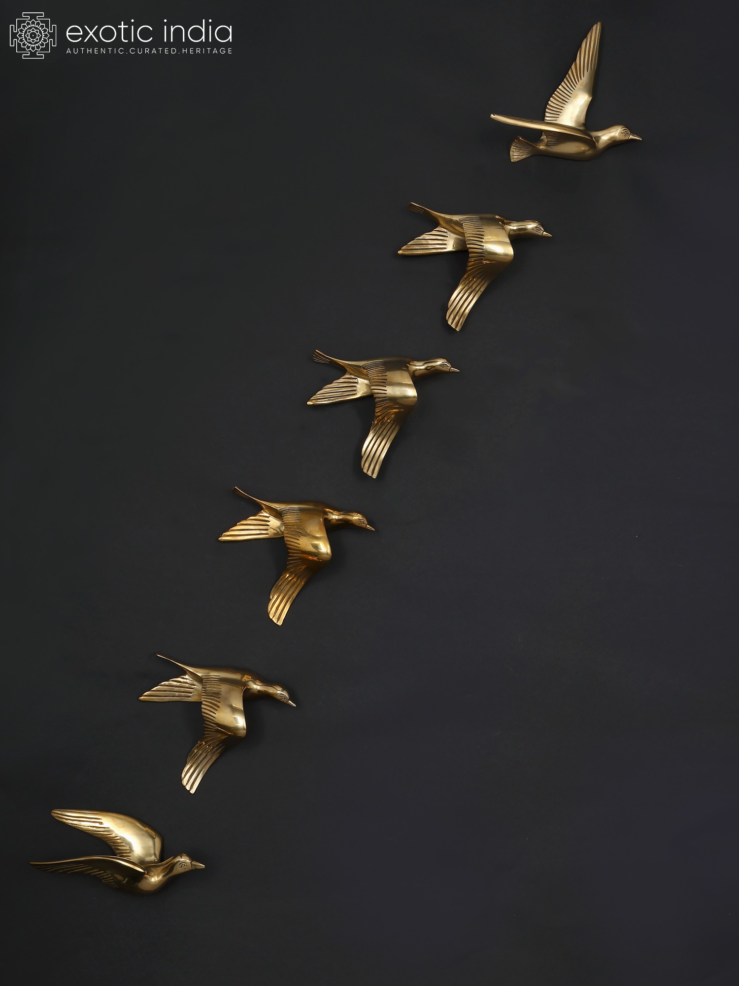 16" Set of Three Decorative Flowers in Golden Finish | Wall Decor