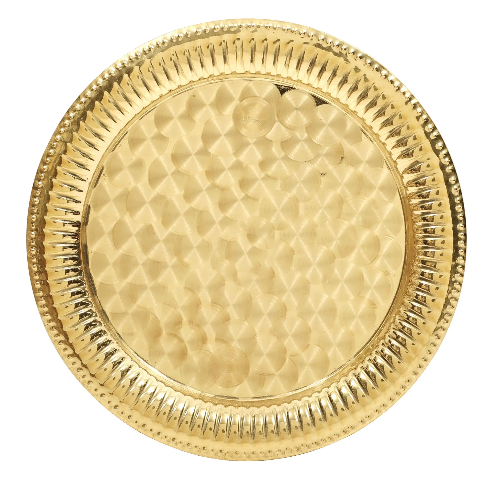 Elevate your dining experience to a symphony of elegance with our Designer Brass Plate. This isn't just a serving dish; it's a canvas of artistic expression and fine craftsmanship. The intricate design, meticulously etched into the brass surface, transforms your dining table into a visual feast. Beyond its utilitarian function, this designer plate becomes a conversation starter, a piece that reflects your appreciation for the fusion of form and function. Delight in the intricacies of each detail as you showcase your culinary creations on this exquisite piece of functional art.