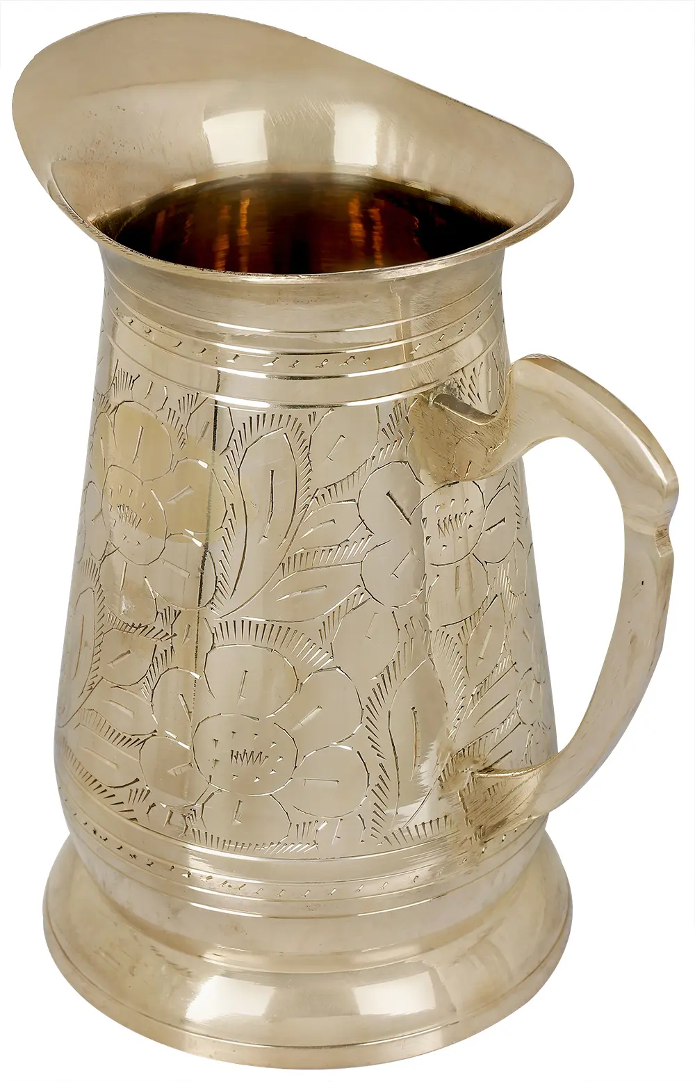 This jug isn't just functional; it's a work of art. The exterior is adorned with intricate floral patterns, meticulously etched into the surface. These delicate details catch the light beautifully, creating a shimmering effect that adds depth and visual interest. The carefully considered design blends seamlessly with both traditional and contemporary decor, making it a versatile addition to any home. Imagine this jug as a centerpiece on your dining table, its radiant finish complementing your finest china. Picture it gracing your sideboard, catching the eye and adding a touch of warmth to your living space. Or perhaps it will find its home in your kitchen, serving as a constant reminder of the beauty that can be found in the simplest of everyday objects.