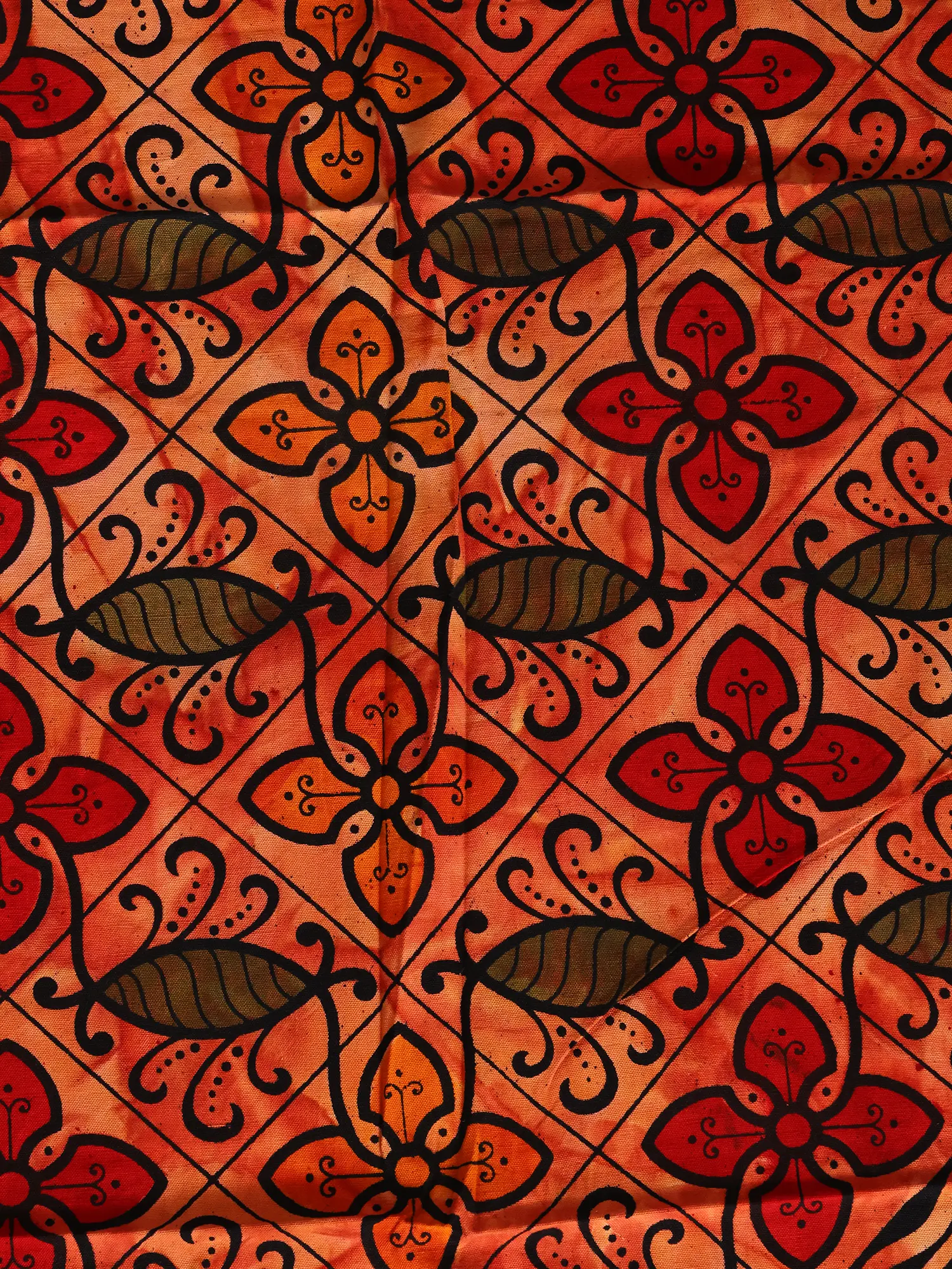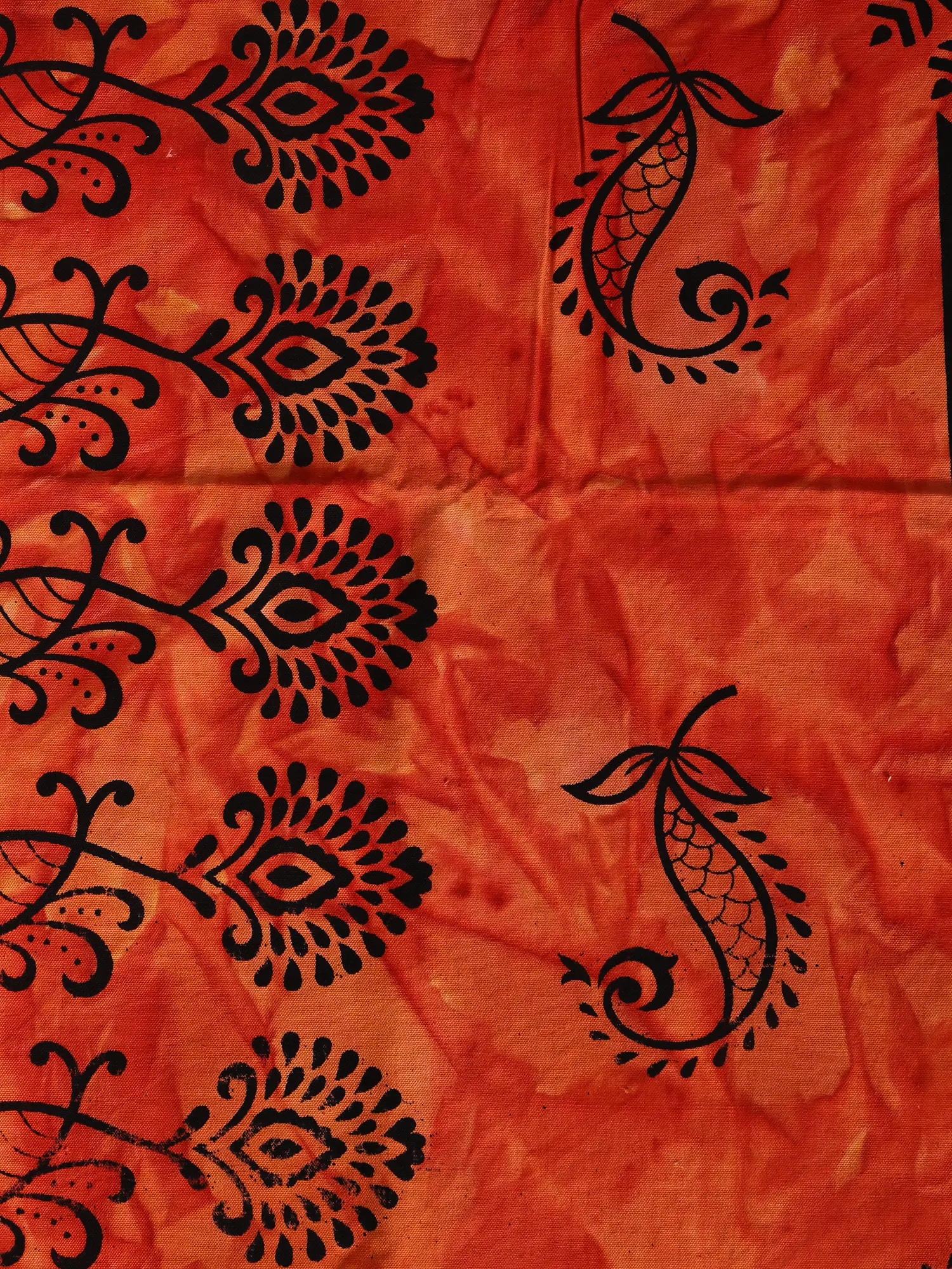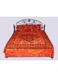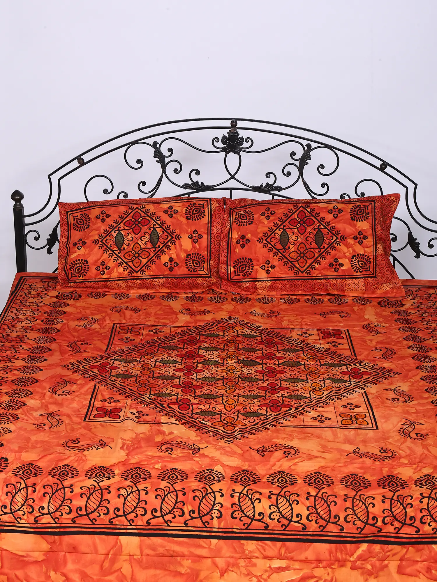 Apricot-Nectar Batik-Dyed Queen Size Bedspread with Pillow Cases and Printed Geometric Pattern