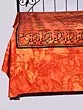 The generous dimensions, spanning 110 inches in length and 93 inches in width, ensure a graceful drape, perfectly adorning your queen-sized bed. The surface unfolds as a canvas of rich, earthy hues, transitioning from deep oranges to warm amber tones, reminiscent of sun-drenched landscapes. Delicate, hand-drawn motifs in contrasting black and subtle reds trace intricate patterns, drawing the eye towards a central geometric mandala that anchors the design. Accompanying pillowcases feature a beautifully coordinated interpretation of these motifs, completing the cohesive aesthetic.