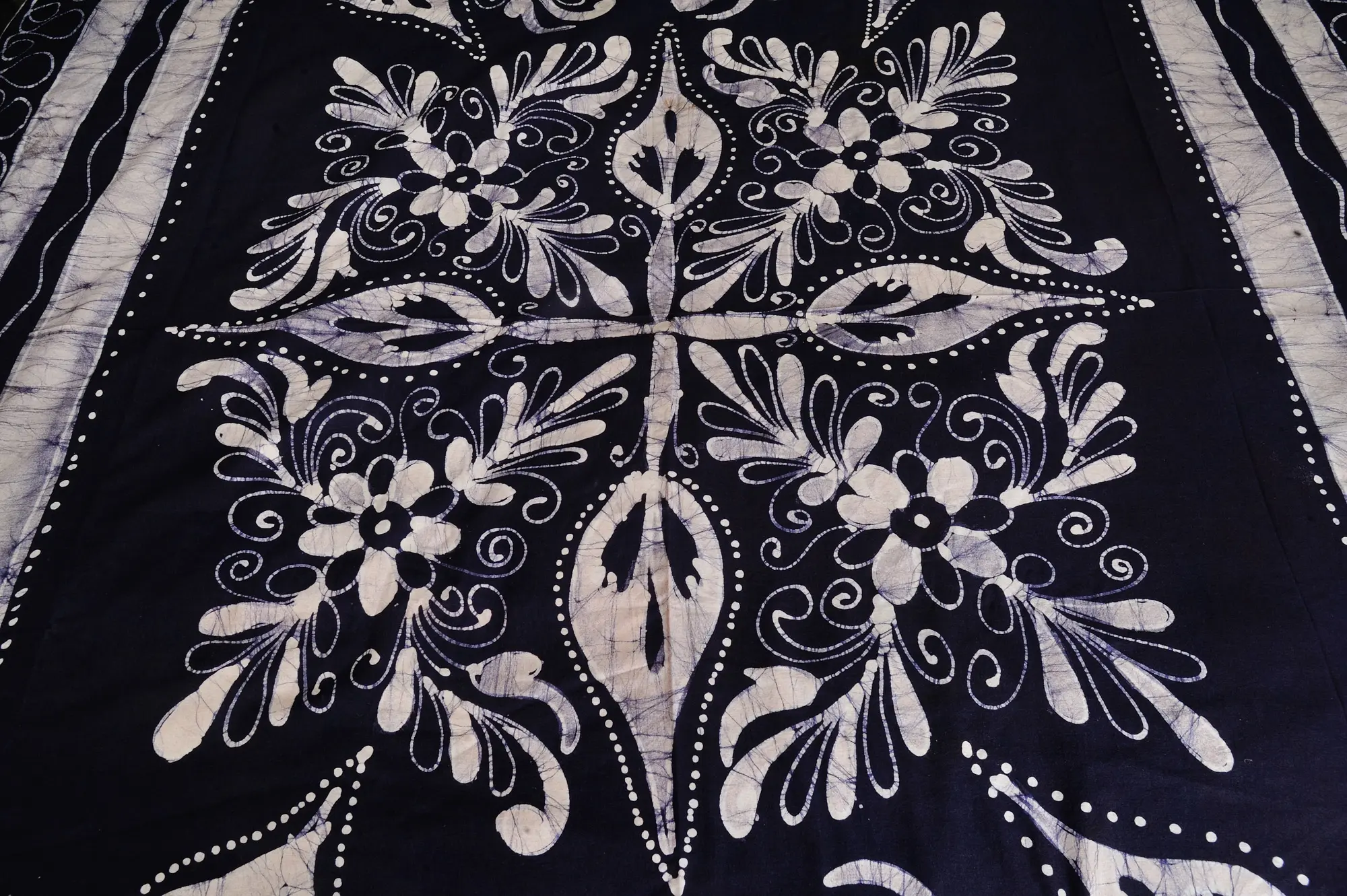 Blue-Jasper Patchwork Reversible Jaipuri Cotton Quilt with Floral Vines