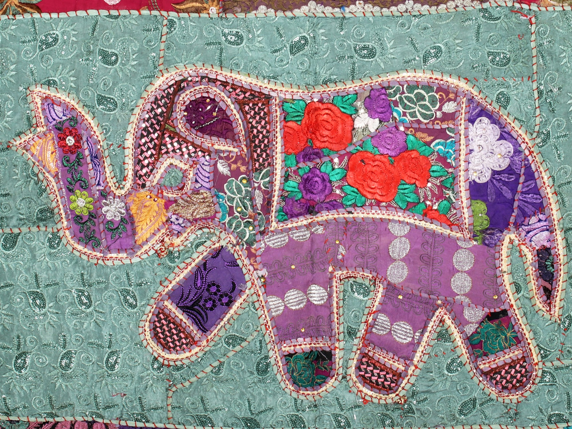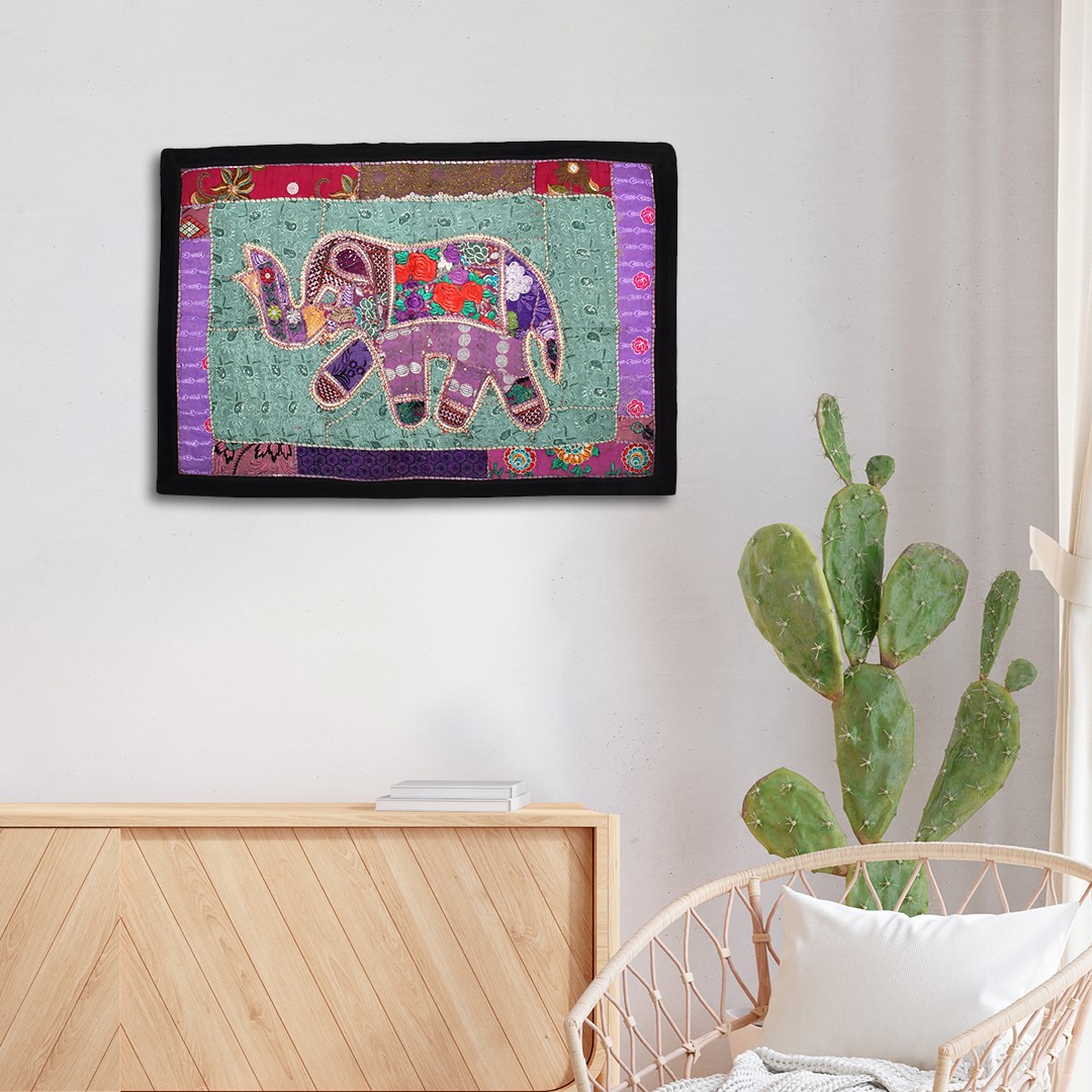 Representing a majestic elephant, this wall tapestry is a vibrant masterpiece that hails from the heartlands of Gujarat. This wall tapestry with its mesmerising embroidery will take you to the realm of rich cultural legacy of India. Each thread conveys a narrative of heritage, with appealing elephant motif embroidery dancing across the fabric to represent power, wisdom, and wealth.