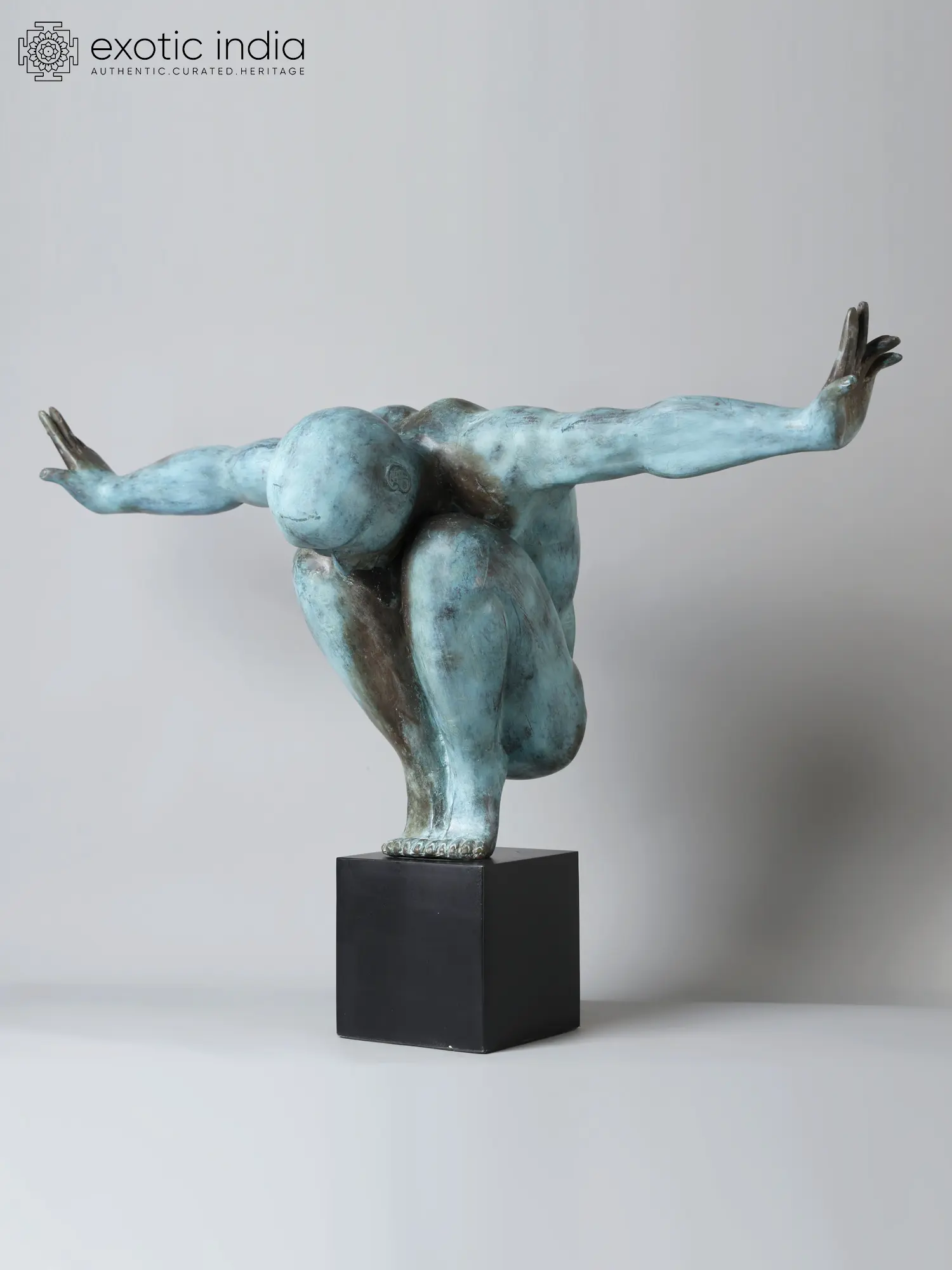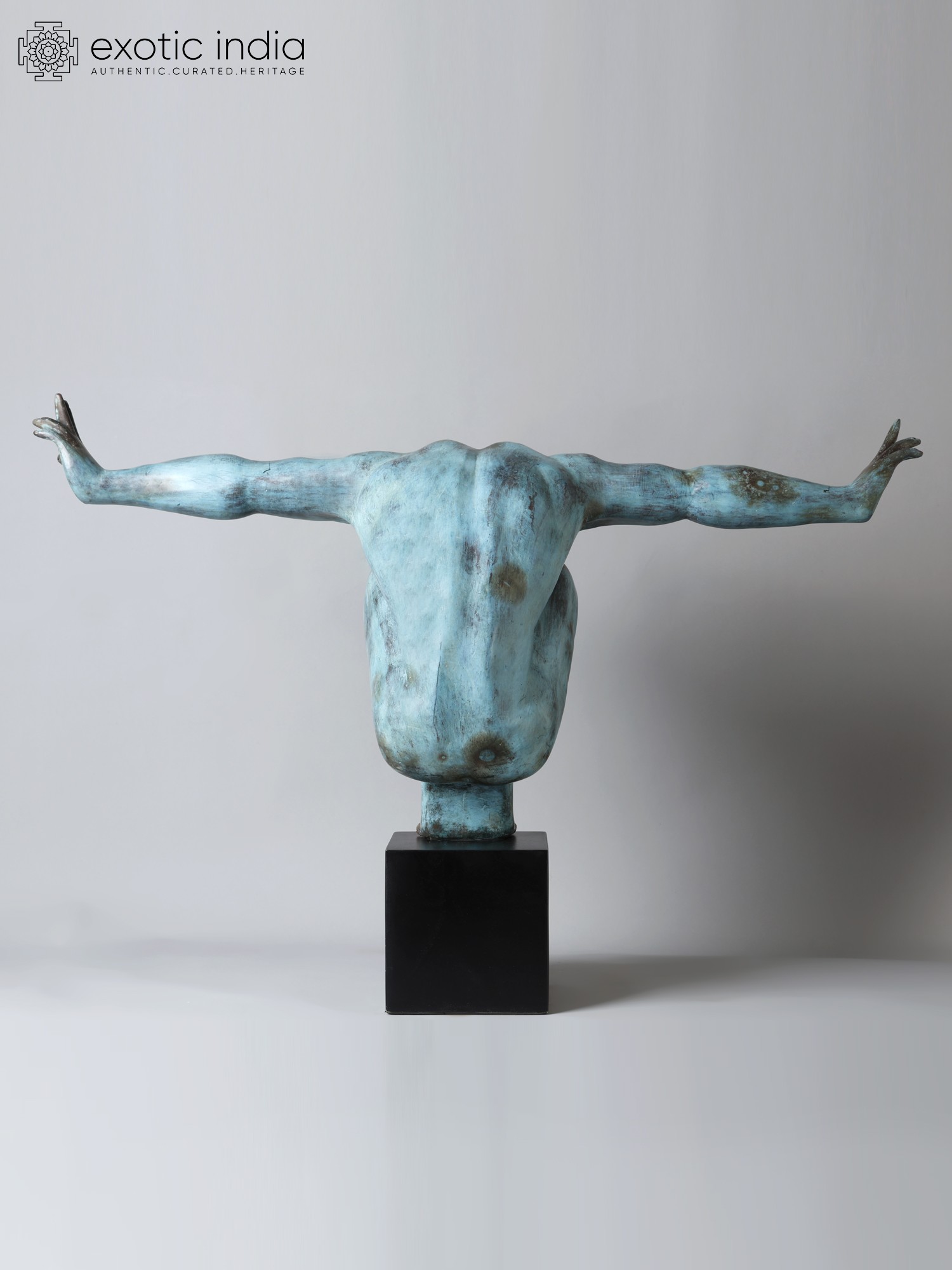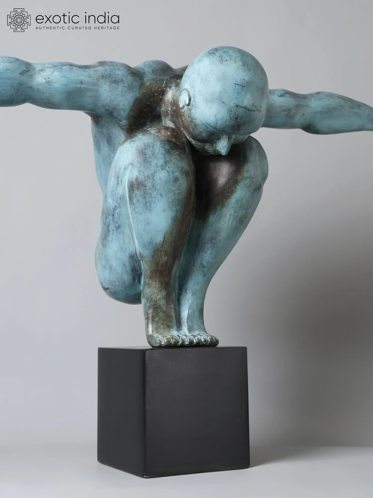 A depiction of the prime grace and power of human form, the swimmer rooted on the wooden base, is an artistic defiance of gravity. Inspired by the classic sculptures where the human body in its bare glory was carved by the ancient master artists, this metal artwork stands in line with ages of artists, who searched the Universe and found one thing worthy of exaltation above all else- the human being.