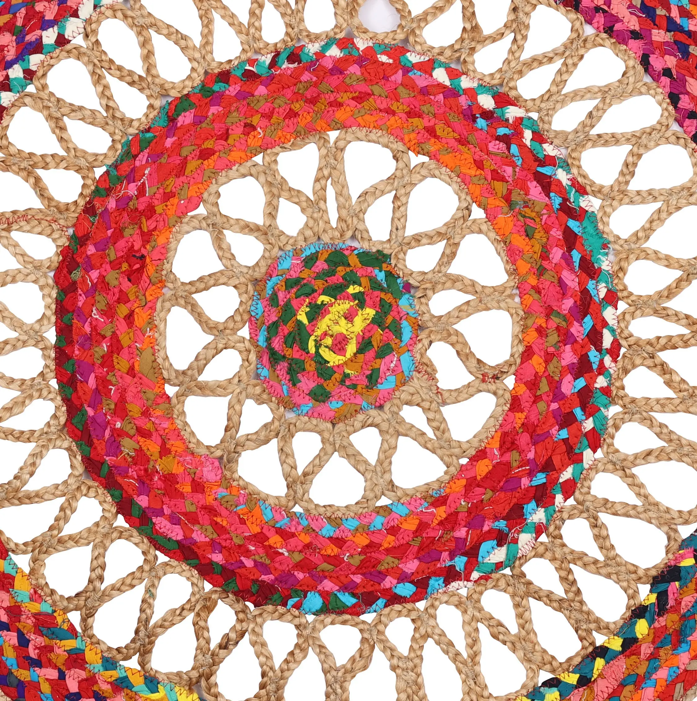 Firecracker Hand-Crafted Upcycled Cotton and Jute Round Meditation Mat with Jali
