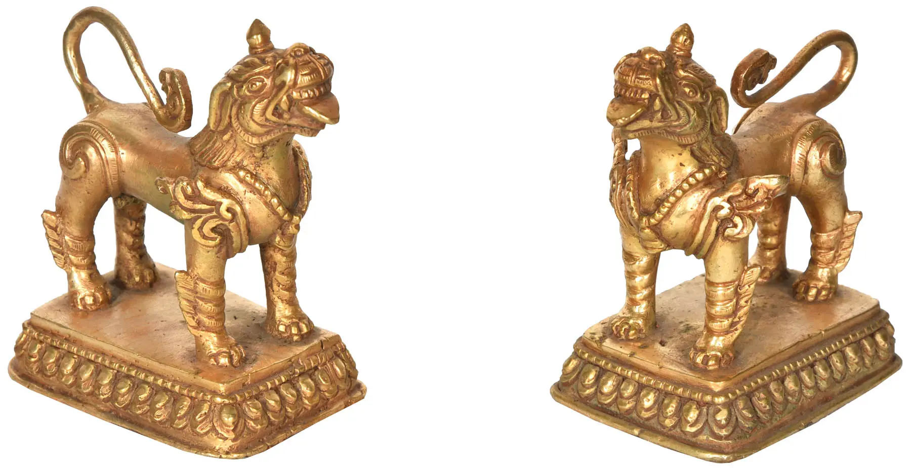 8" Pair of Brass Temple Lions