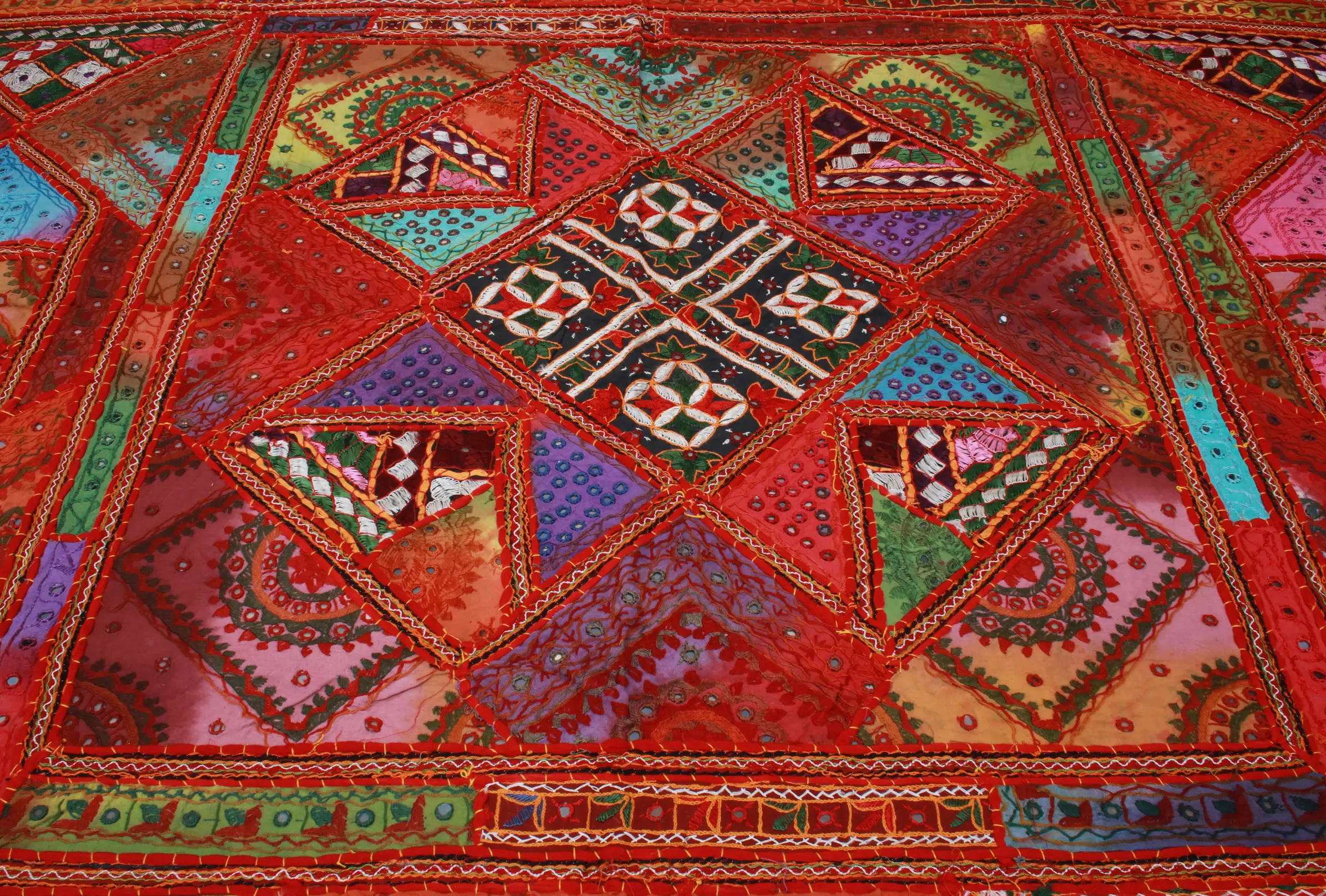 The signature patches that grace this bedspread feature the rustic style of embroidery that has been perfected locally in Kutch. Tender foliage motifs in natural colours are to be found in abundance, the same having been puntuated with miniscule silver mirrors that shimmer against the light. All these are the rage across the subcontinent, which explains how widely coveted are the dupattas, ghagras, and home decor fashioned in the region. Infuse your space with a bit of the essence of India - earthy colours, rangoli-esque motifs, and a disntinctly endemic art of embroidery - to return to each night.