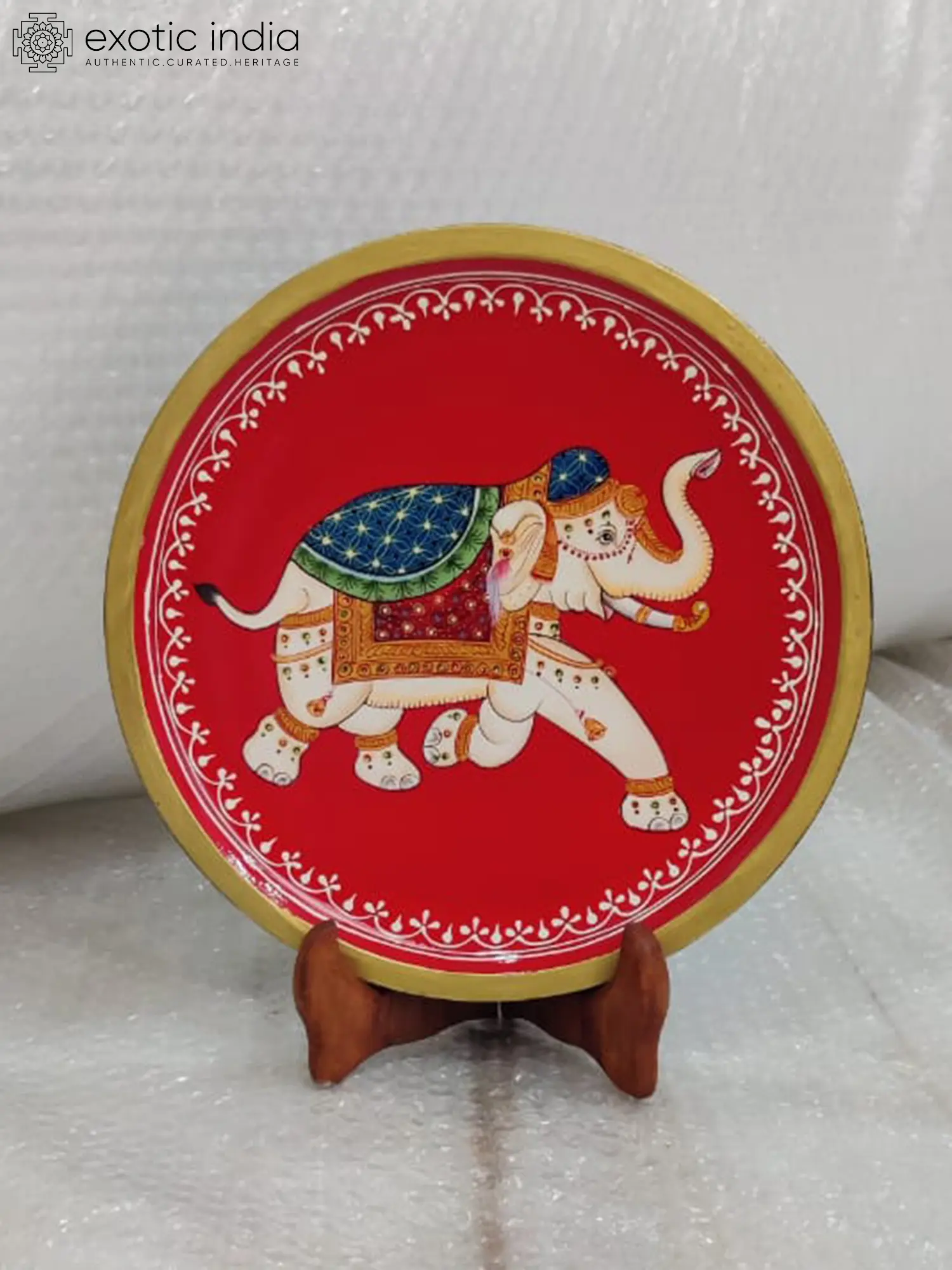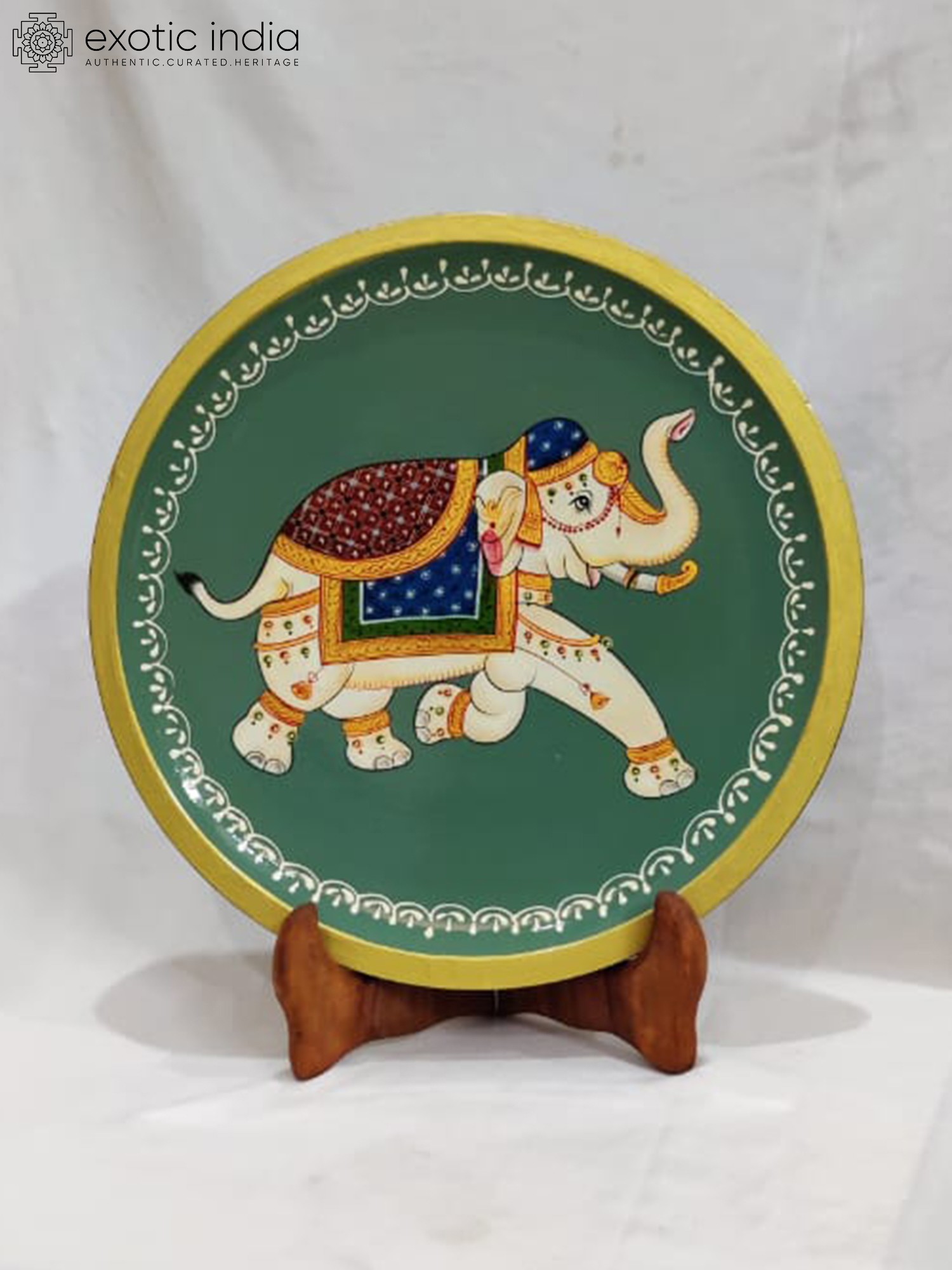 Decorative Elephant Wall Hanging Plate | Pichwai Art | Hand-Painted