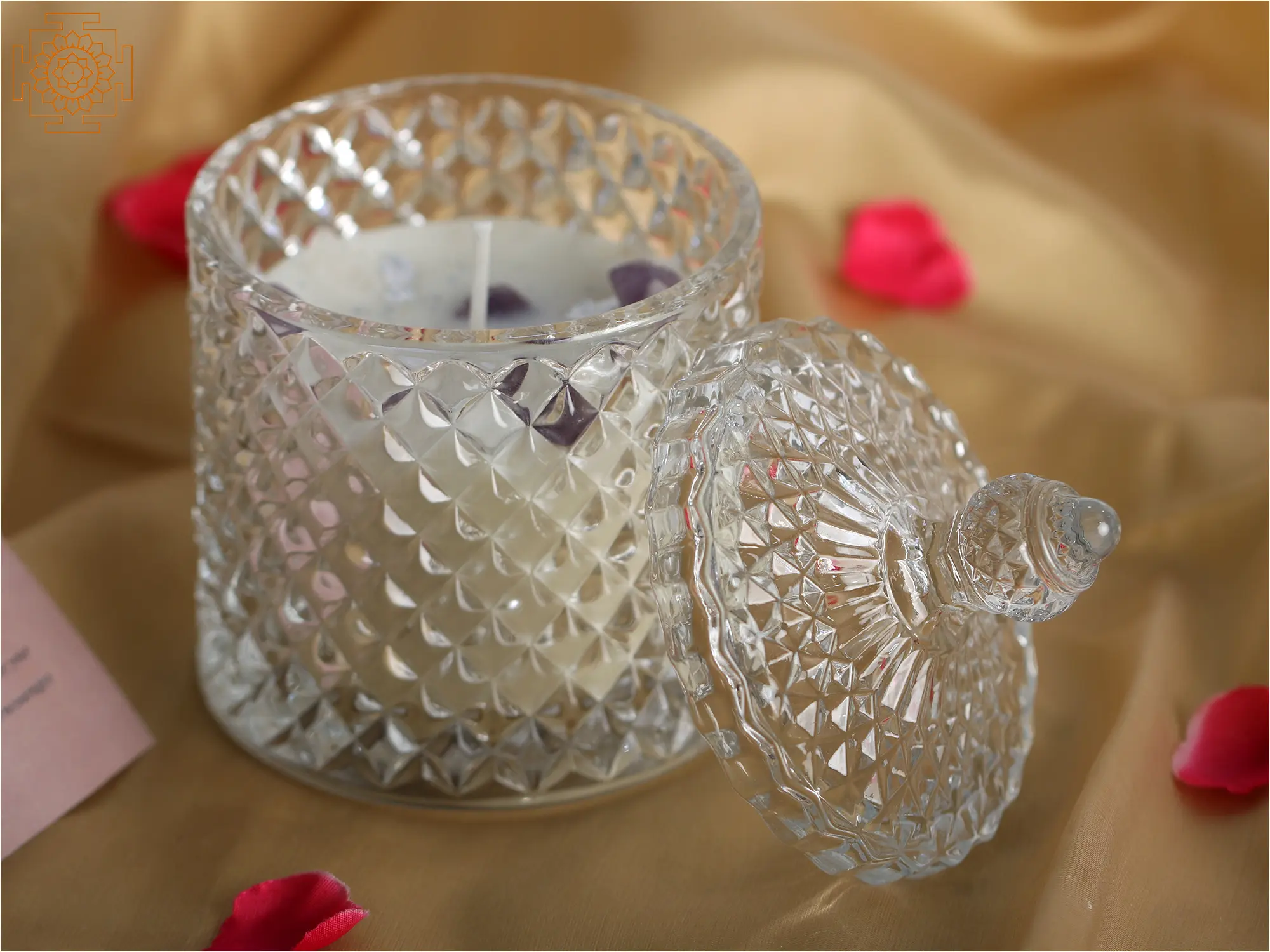 According to Vaastu, by selecting the correct smells, one may convert their houses into serene sanctuaries. Scented candles are the newest and most popular additions to the new discoveries of home décor, table design, and perfumes. This Infused Glass Candle Jar with Gemstone Crystal will help you create a quiet environment. The candle comes in a glass jar with exquisite elevations on the surface that create a prismatic effect when the candle's smooth light reflects on it. When not in use, the candle is protected from dust by a cover made of the same material and design as the jar. This candle in a jar is an excellent addition to any place that demands a soothing atmosphere.