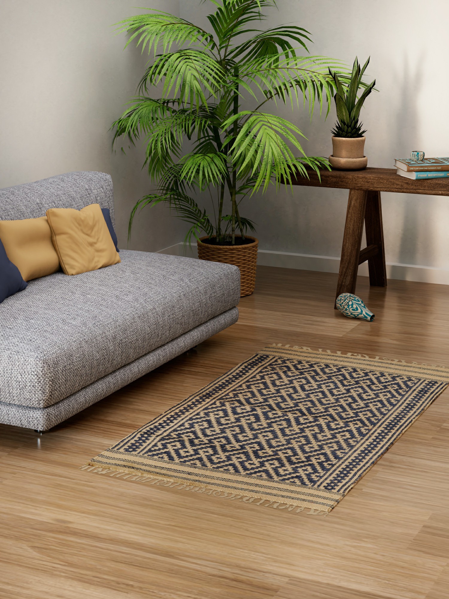 Crafted from durable jute fibers, this rug is not only aesthetically pleasing but also environmentally conscious. Jute is a sustainable and biodegradable material, making it an excellent choice for those who are mindful of their ecological footprint. The natural texture of the jute adds a unique charm, enhancing the rug's visual appeal and creating a sense of organic warmth in your home. Jute is known for its resilience, providing a sturdy foundation for high-traffic areas. It is easy to maintain and designed to withstand daily wear and tear, ensuring that your rug remains a cherished piece for years to come. The natural fibers add a layer of insulation and noise reduction to any space.
