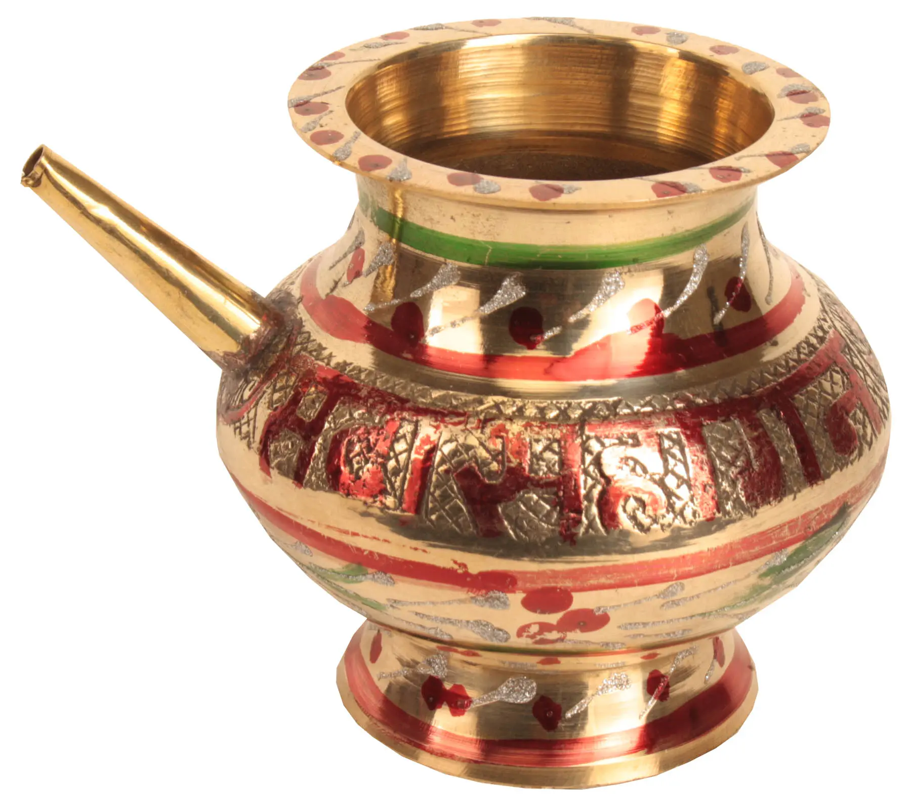 This ritual kettle is not only functional but also a striking decorative piece. Its presence will enhance the ambiance of your puja room or add a touch of cultural artistry to your kitchen. The warm glow of the brass creates a sense of sacredness and serenity, perfect for setting the mood during prayer and fasting. It's also a thoughtful and meaningful gift for newly married women or those celebrating Karva Chauth for many years. Presenting this kettle demonstrates your appreciation for their dedication and love. The timeless design ensures that it will be treasured for generations, becoming a family heirloom filled with stories and memories. Whether you are looking to enhance your own rituals or to give a significant gift, this kettle is sure to add both beauty and meaning to the occasion.