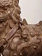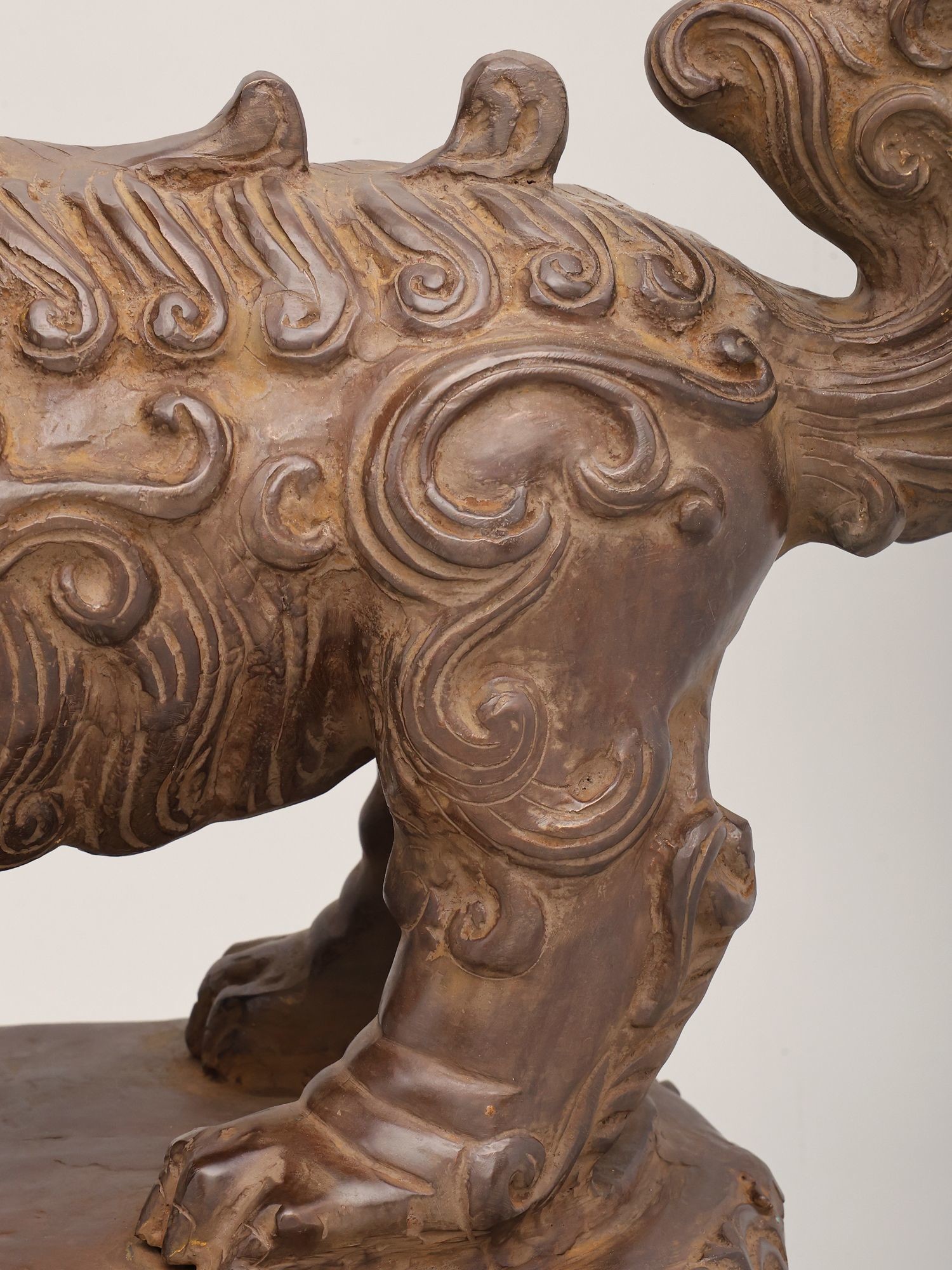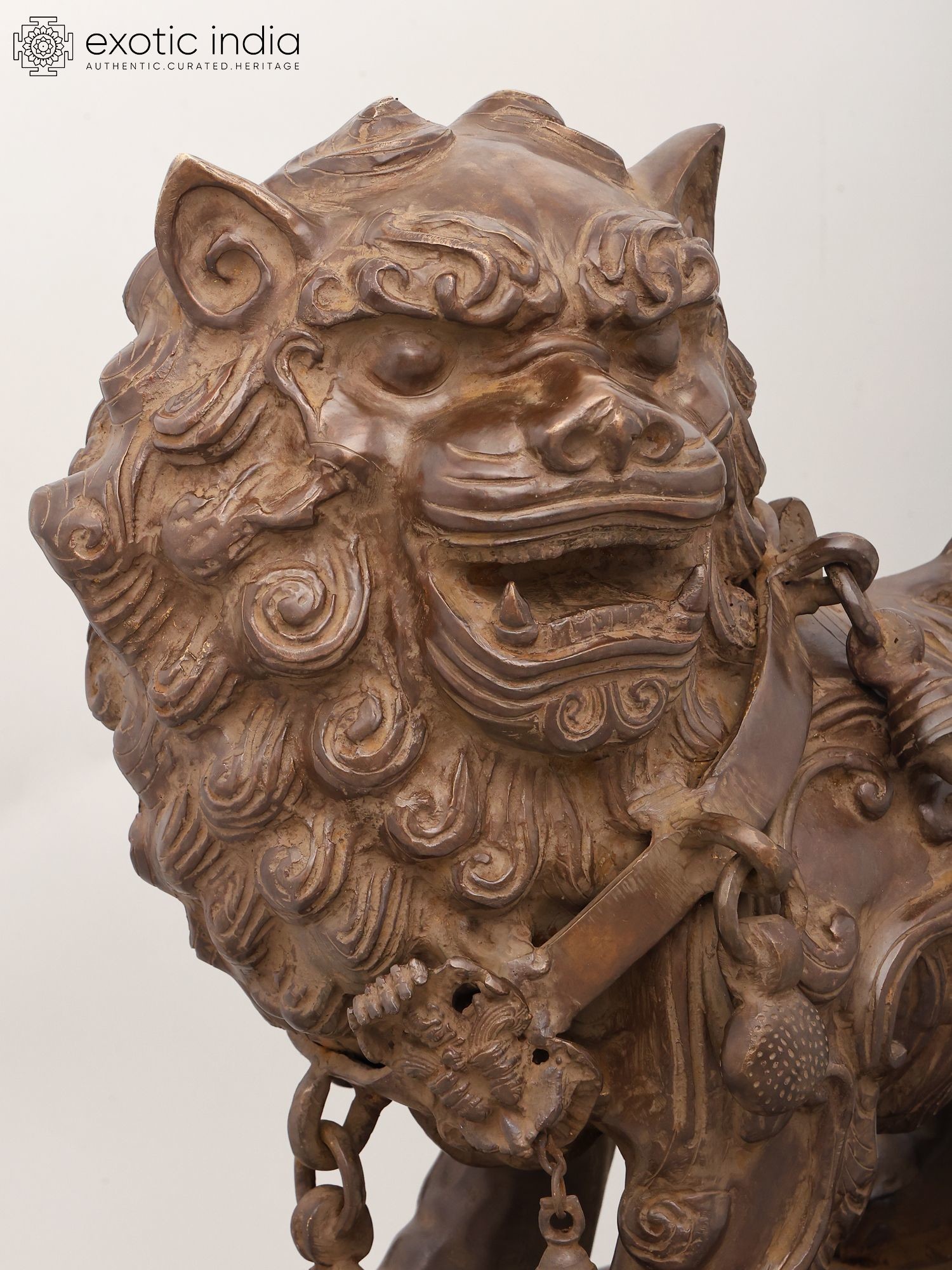 Features intricate detailing, including a fierce expression and ornate mane, characteristic of guardian lions.