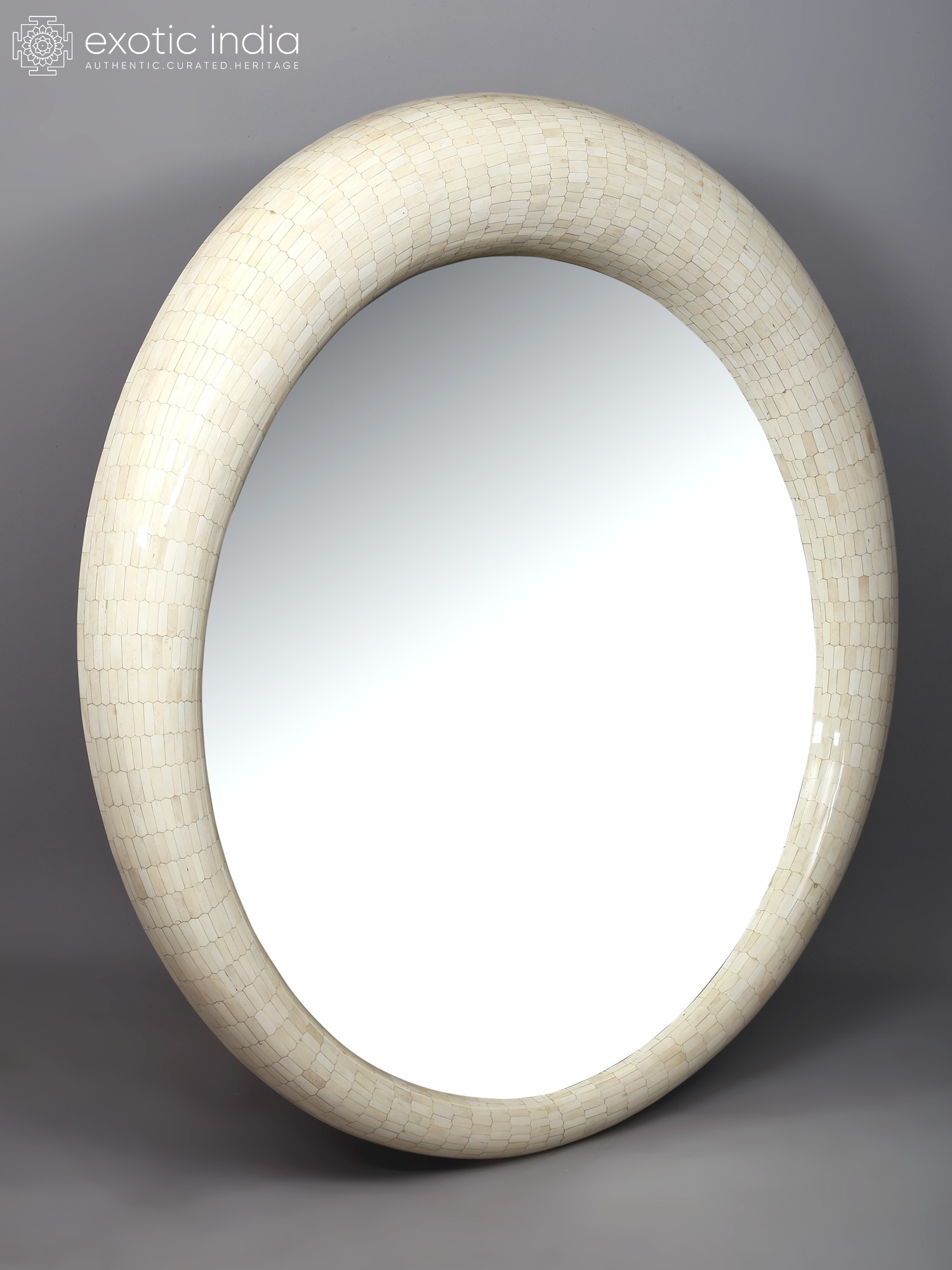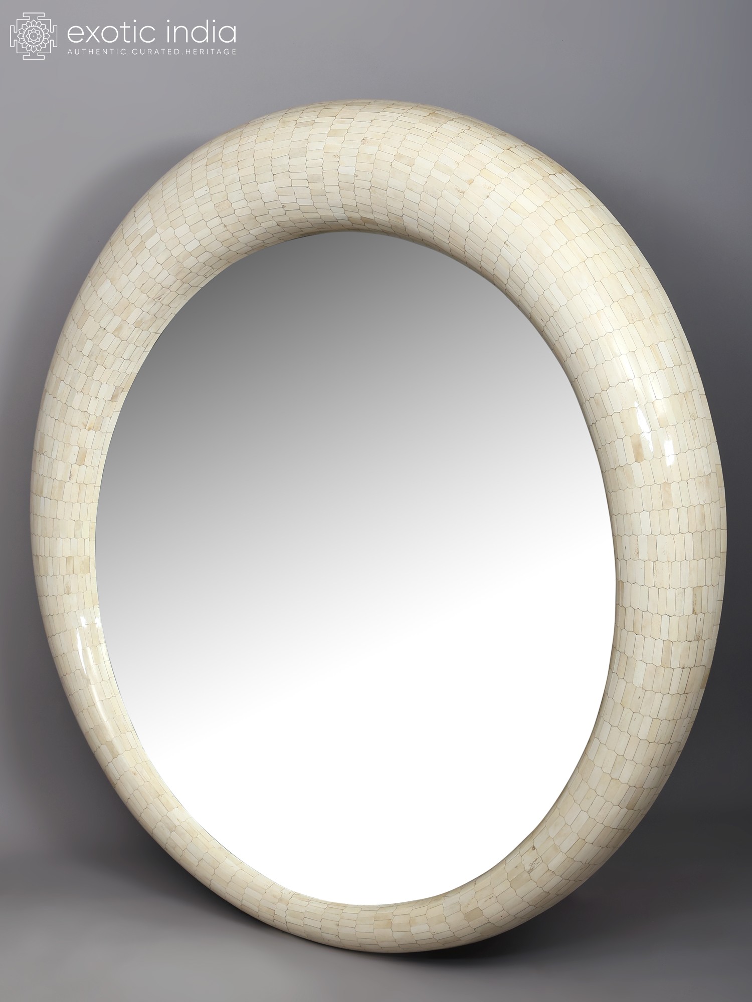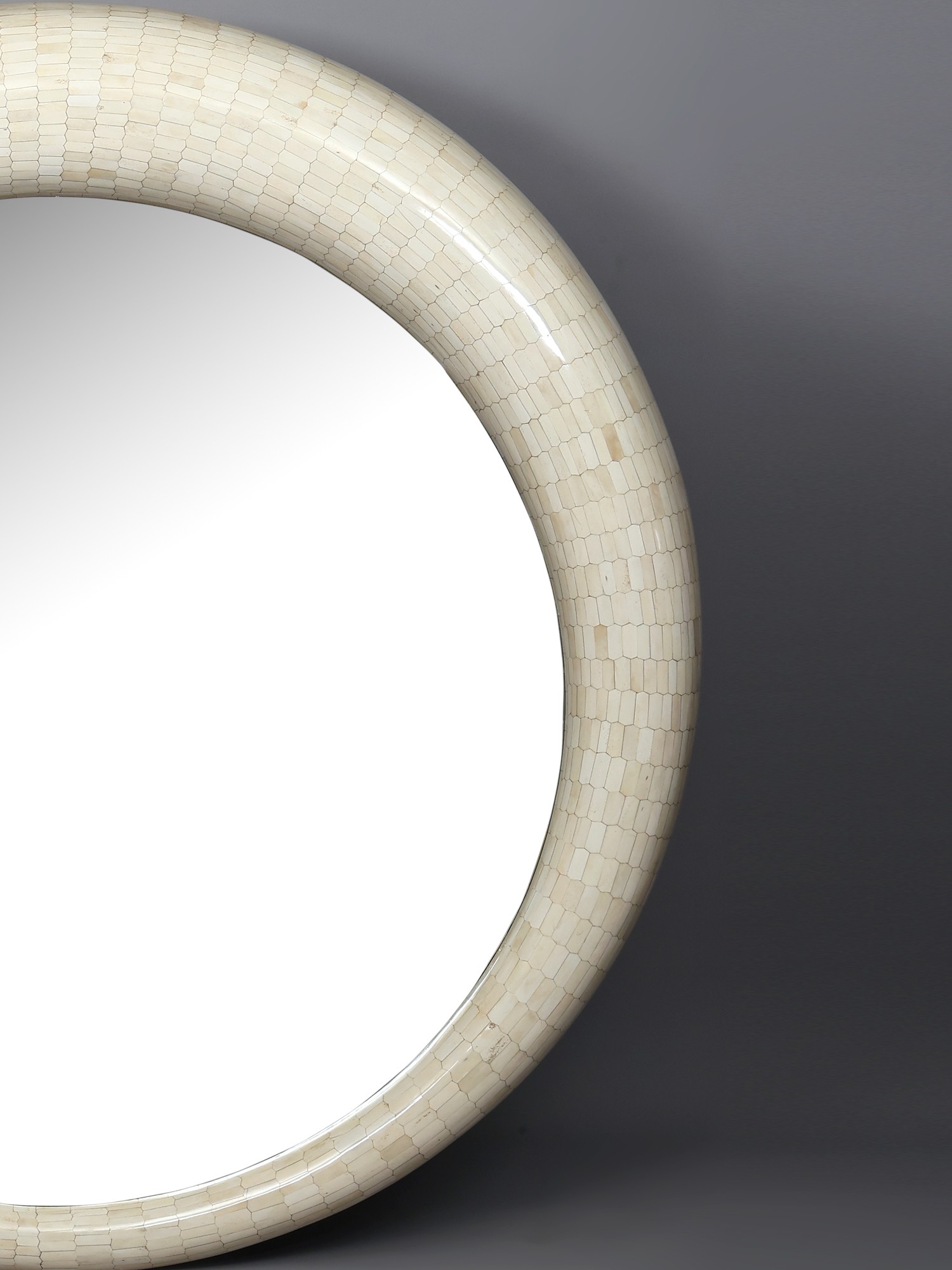 Large Decorative Round Mirror with Mosaic Bone Frame