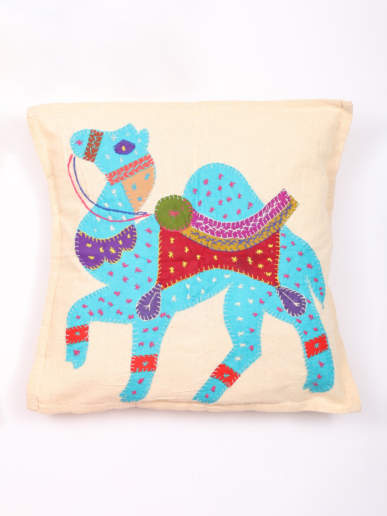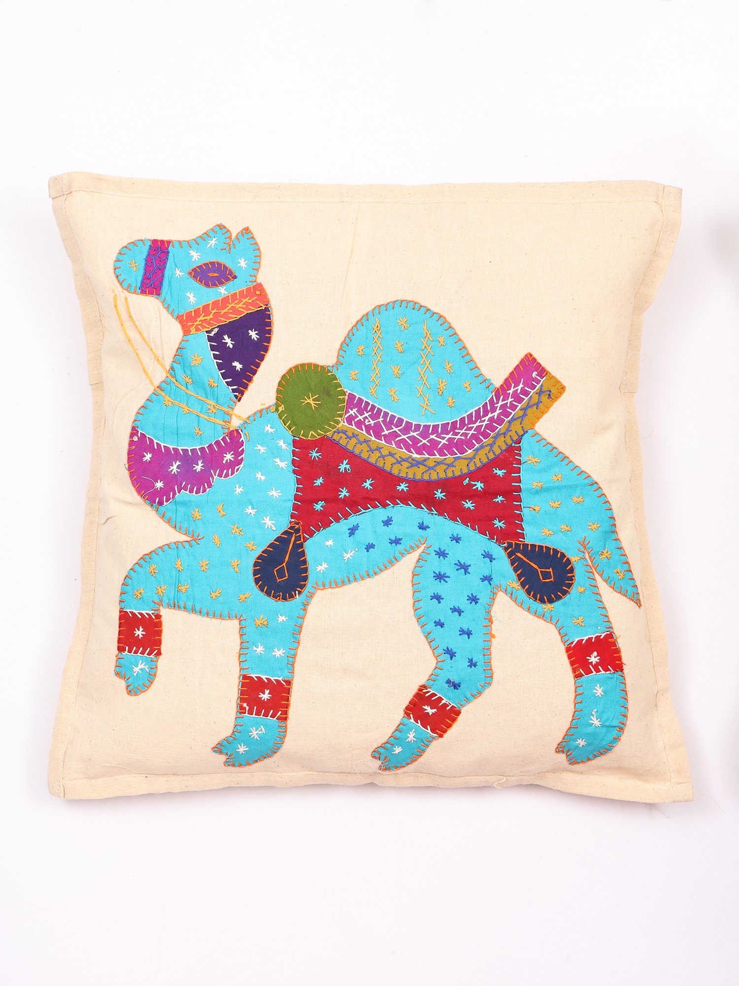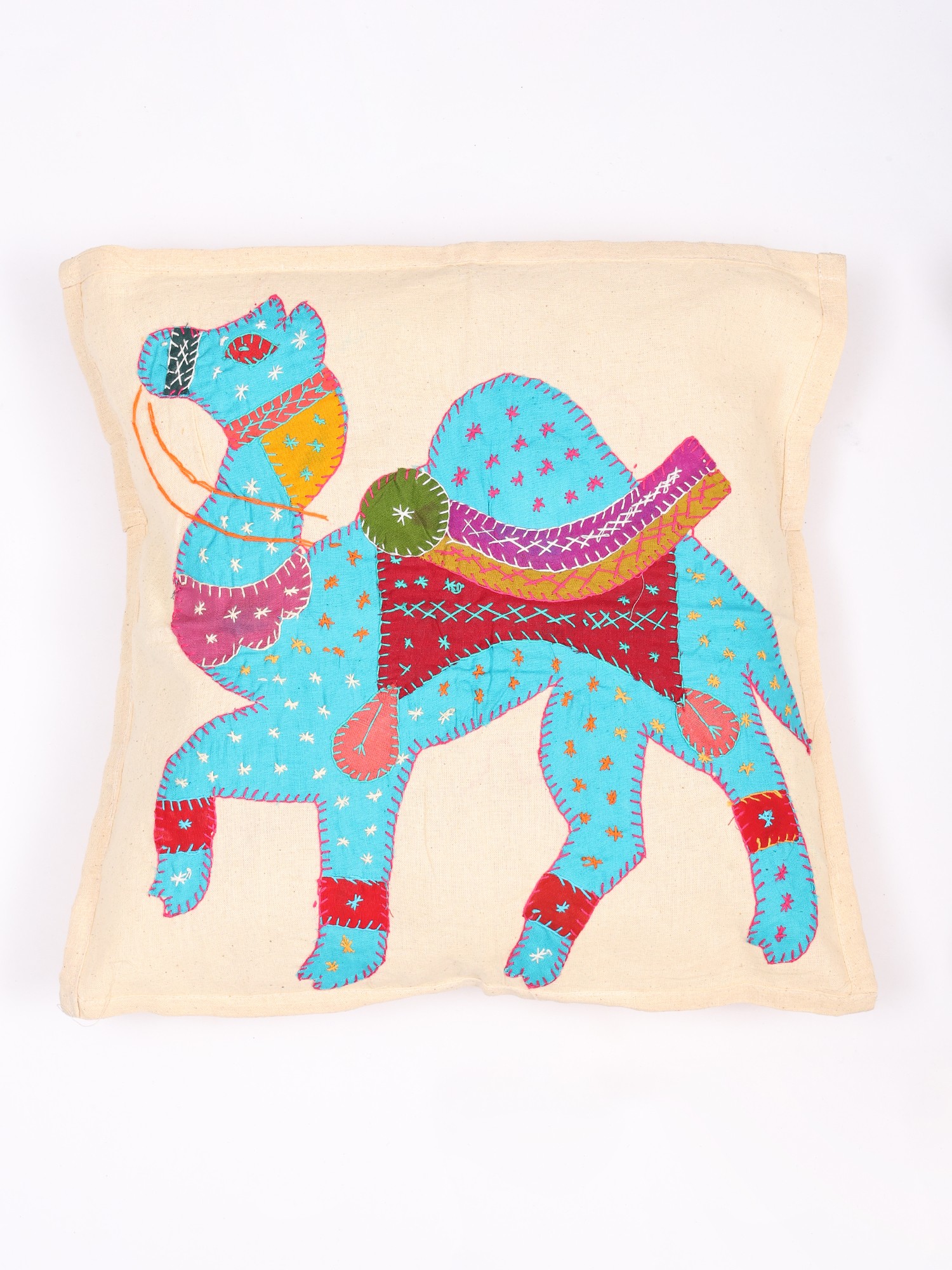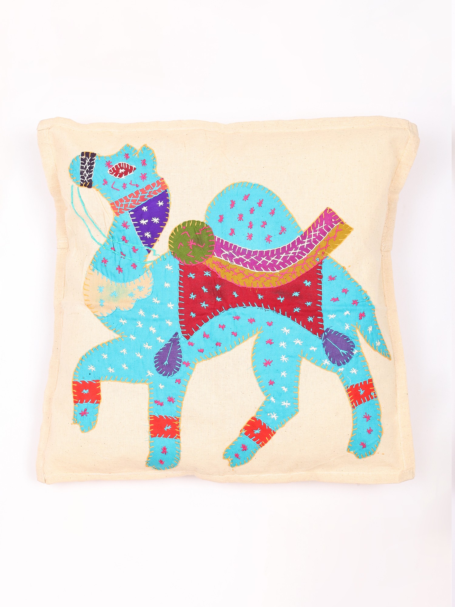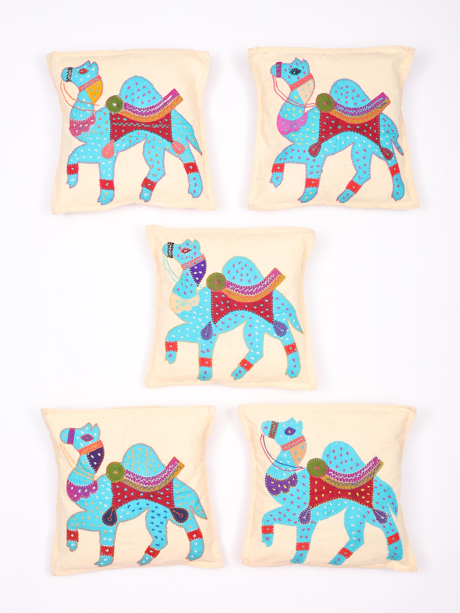 Lot of Five Appliqué Elephant Cushion Covers with All-Over Kantha Embroidery