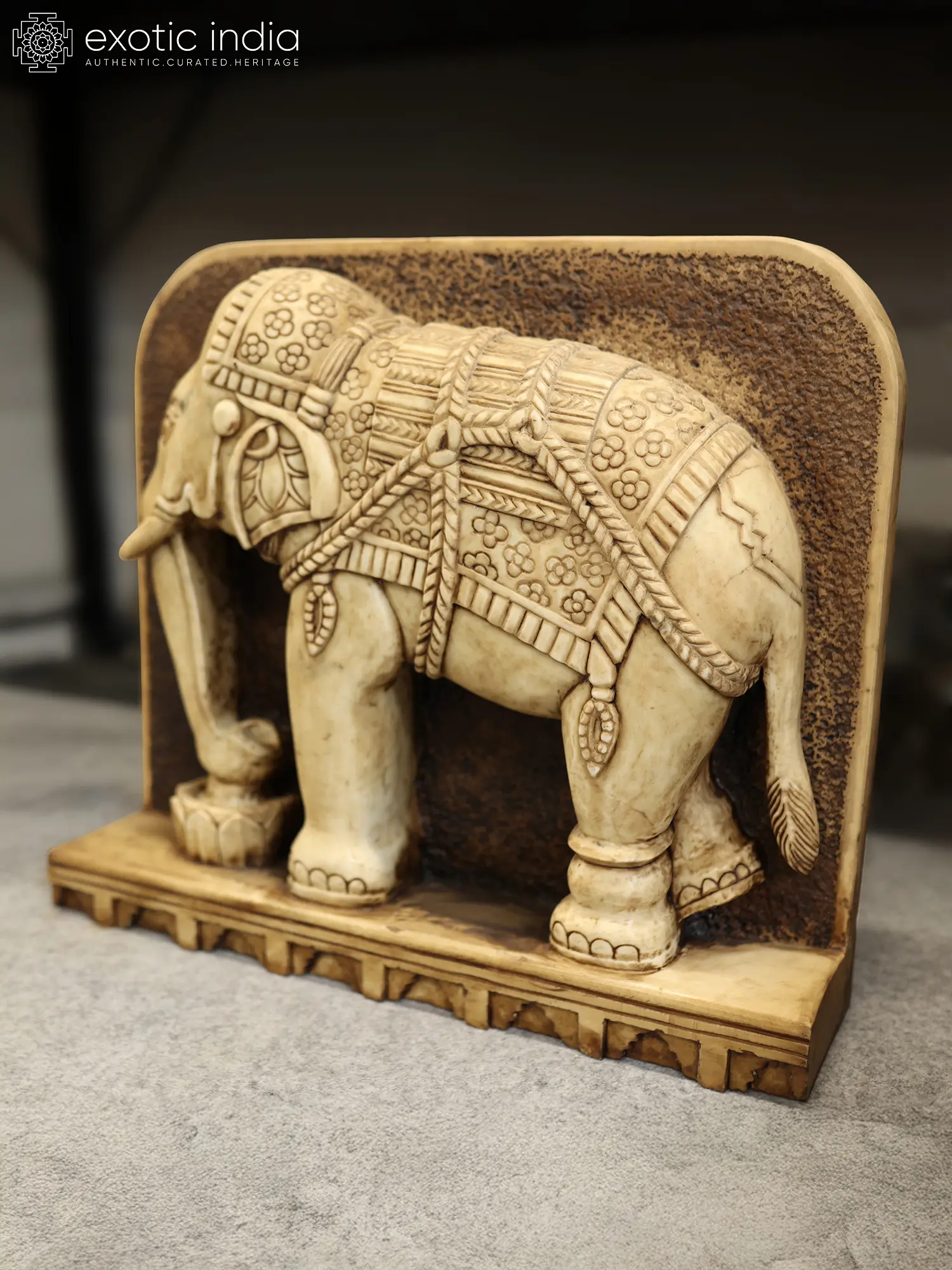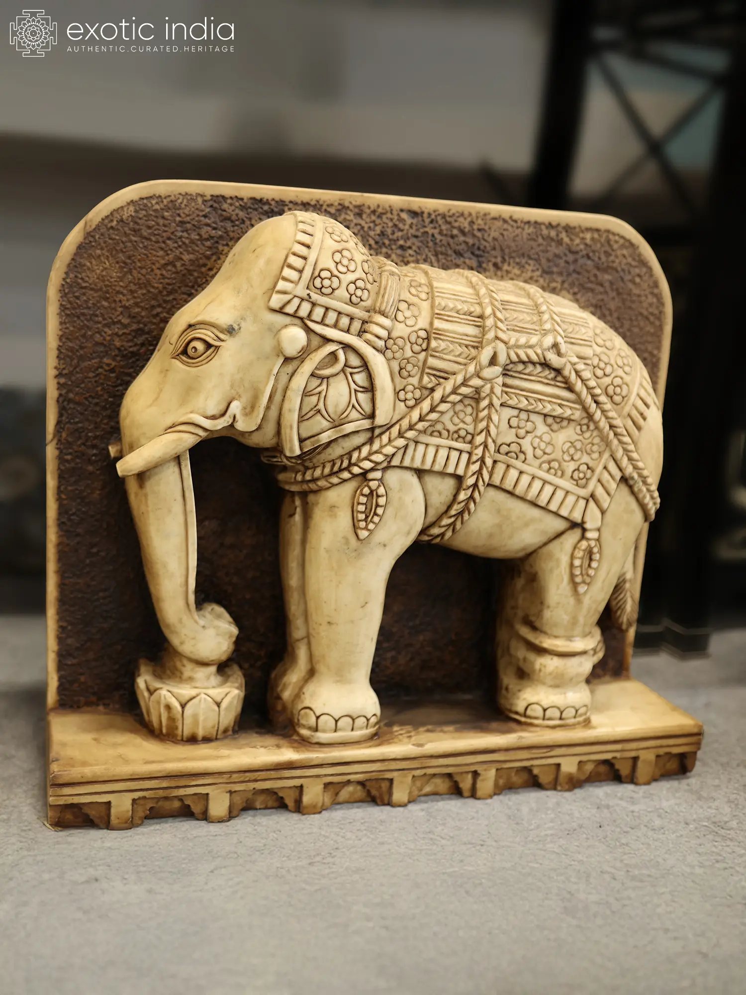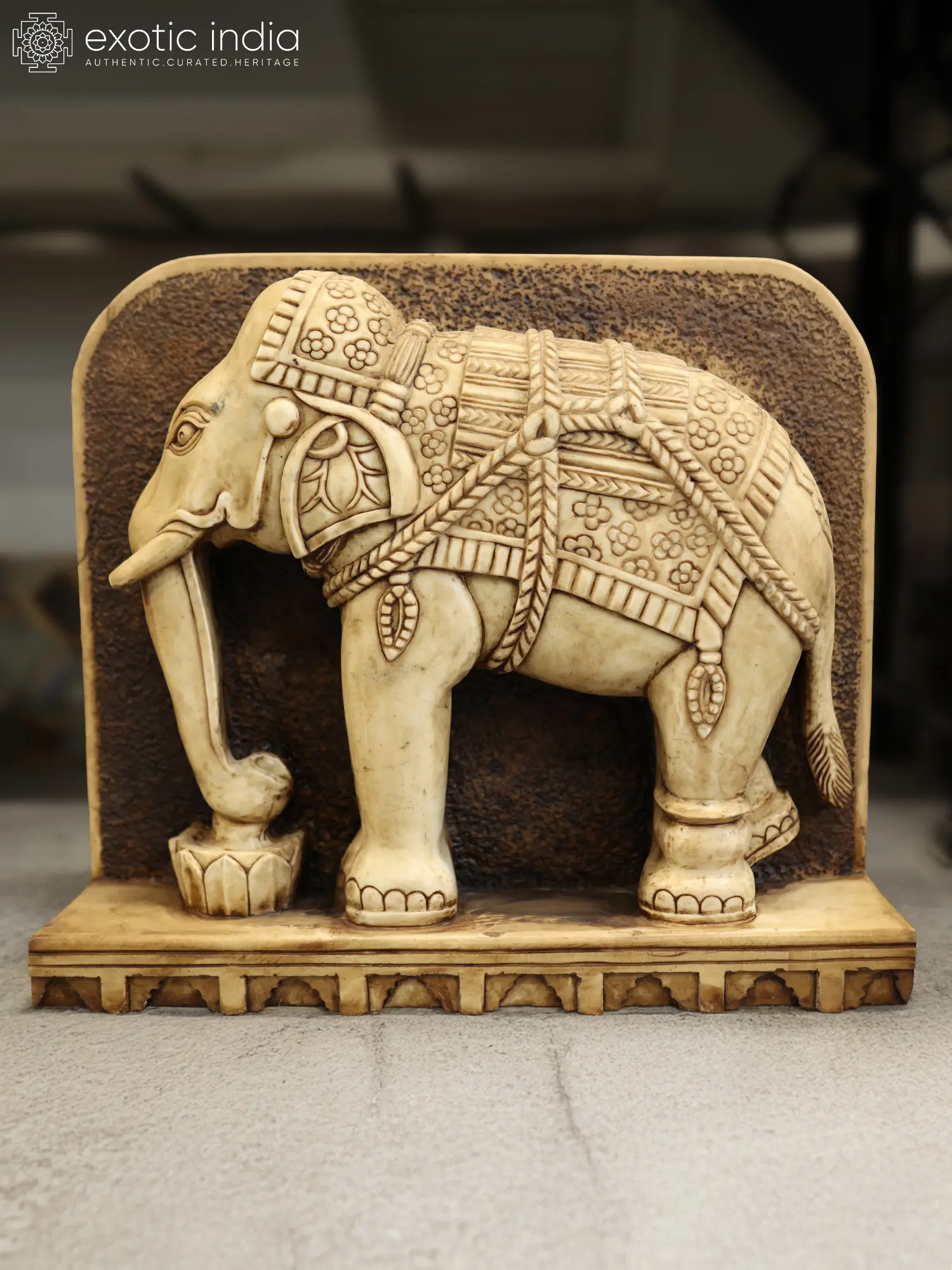 Features a pair of majestic elephant sculptures, symbolizing strength and grace.