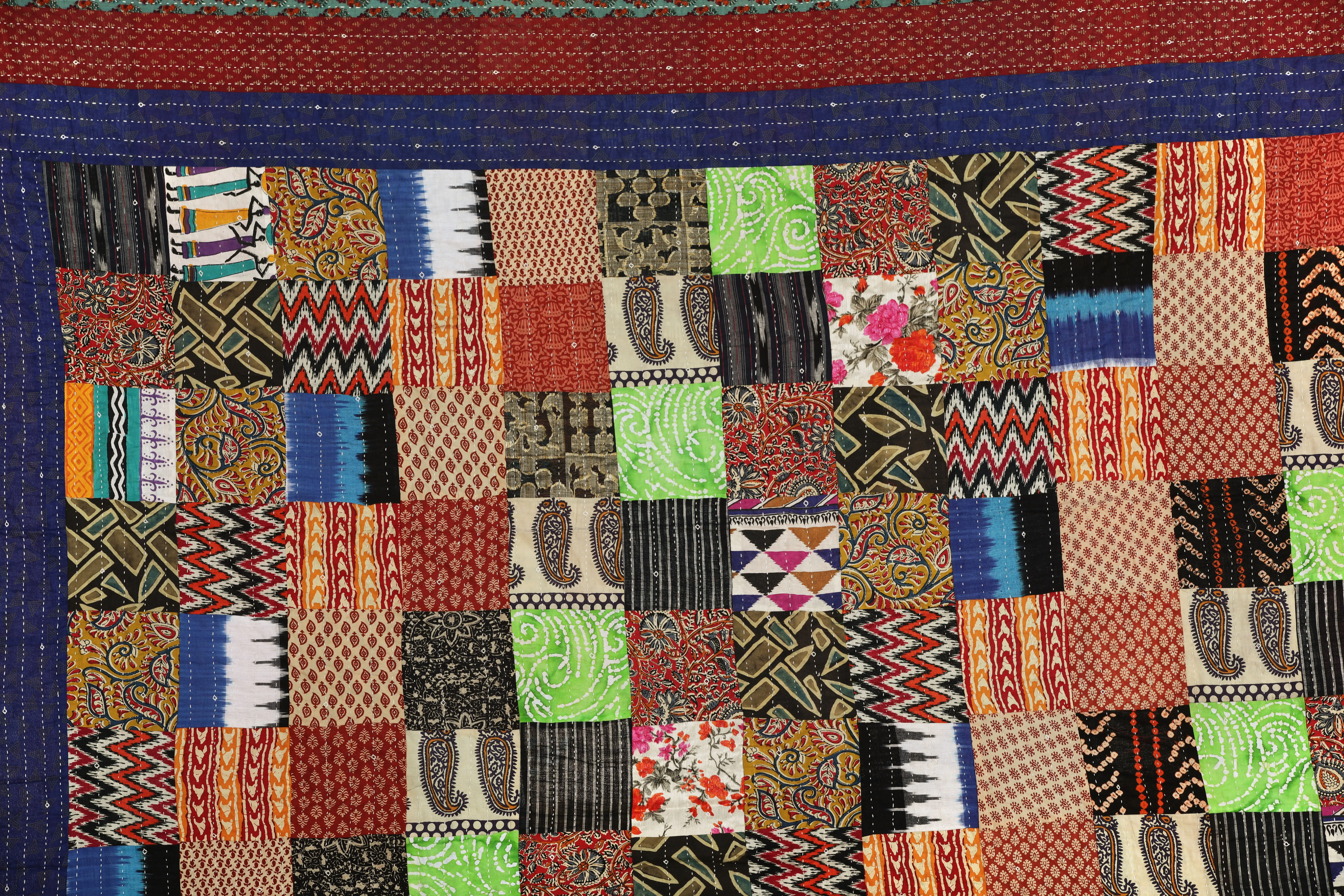 Floral Multicolor Printed Twin Size Bedcover from Jaipur with Kantha Straight Stitch