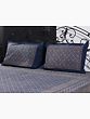Dual Blue Color Gold Handblock Printed Elephant-Floral-Abstract Motif Cotton Queen Size Bedsheet With Two Pillow Cover