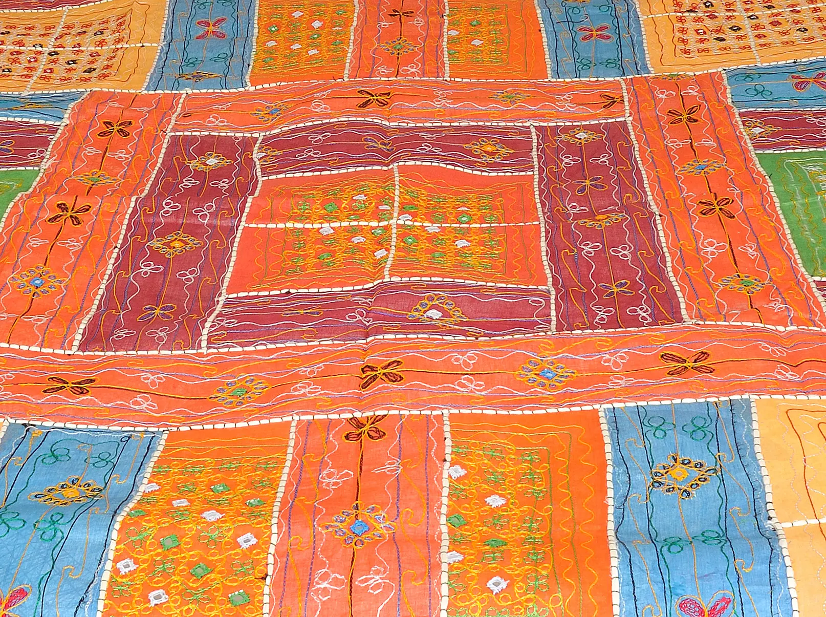 Bedcover from Jaipur with Embroidered Motifs and Mirrors