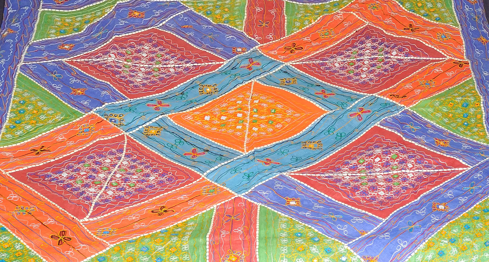 Hand-Embroidered Bedspread from Kutch with Geometrical Designs