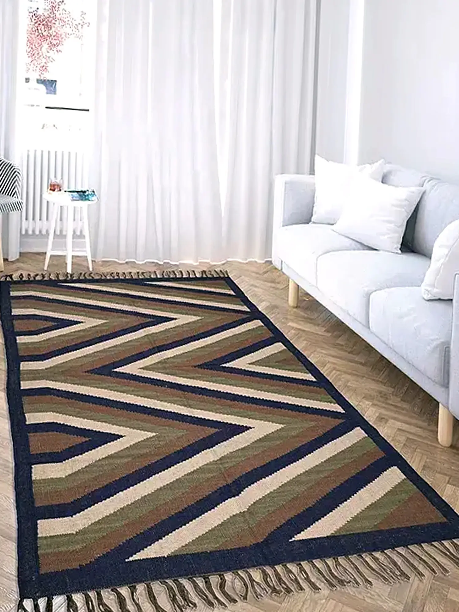 Wool And Jute Mix Aztec Pattern Persian Kilim Carpet