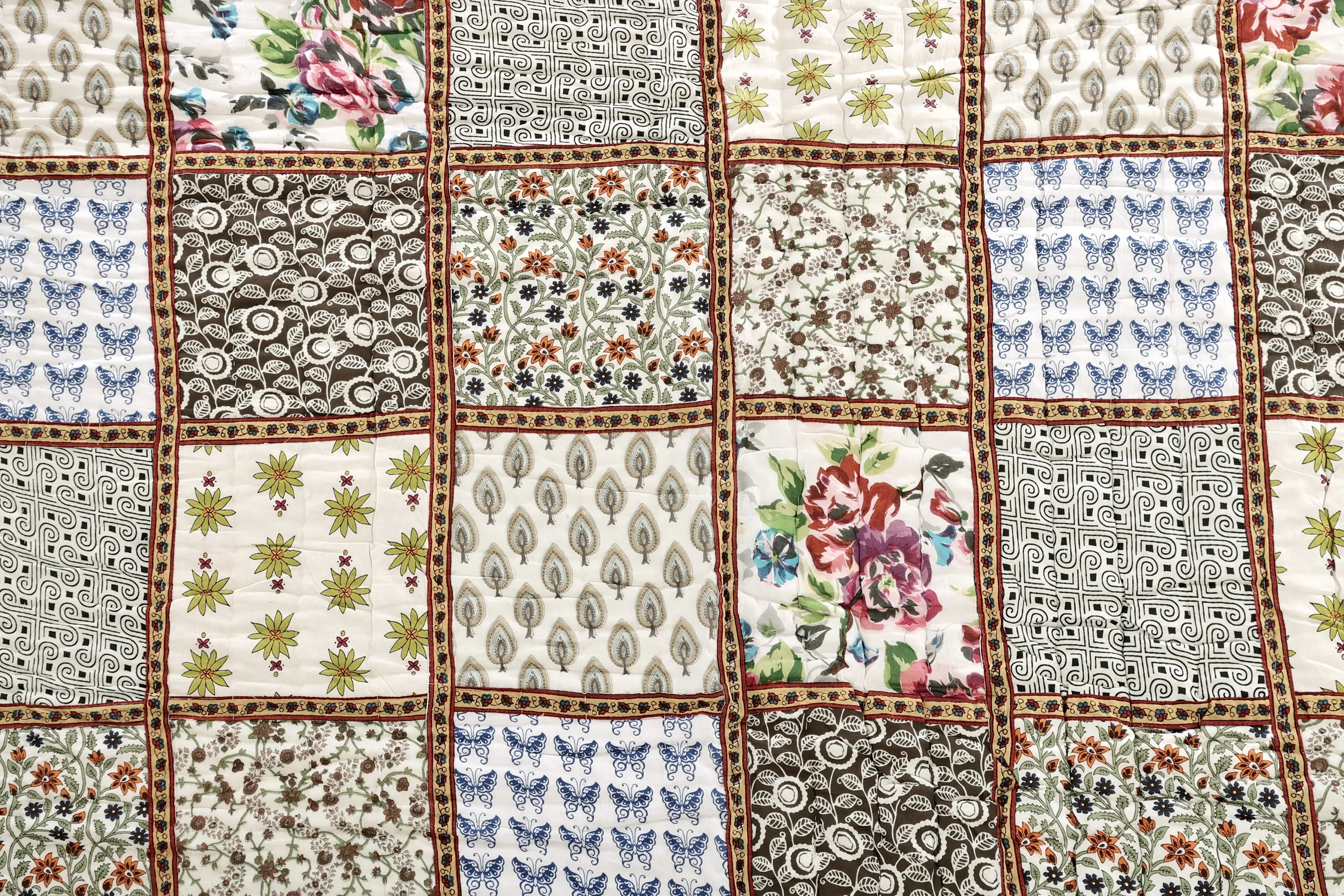 Immerse yourself in a visual symphony of colours and craftsmanship with our Multicolored Patchwork Reversible Jaipuri Quilt. This quilt is a manifestation of the rich cultural tapestry of Jaipur, where tradition meets modernity in a seamless dance of hues. The multicoloured patches are like strokes of a painter's brush, each telling a unique story. The floral vines, intricately entwined, add a touch of nature's grace, bringing the vibrant landscapes of Jaipur into your living space. The reversible feature allows you to transform the mood of your space effortlessly. It's not just a quilt; it's a testament to the vibrant spirit of Jaipur, wrapped in the warmth of tradition.