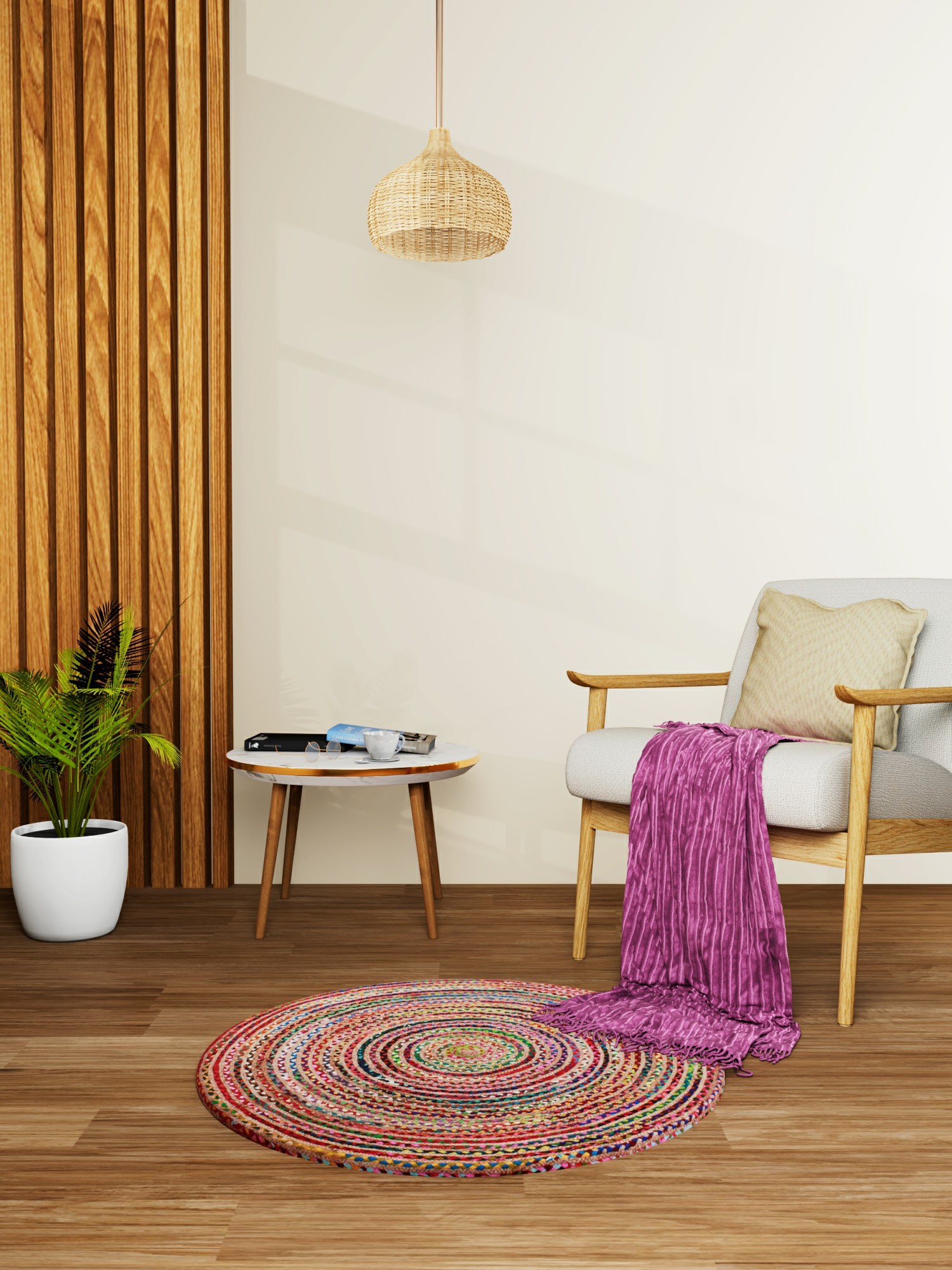 Meadow-Violet Hand-woven Banarasi Saree and Jute Weave on Aanchal