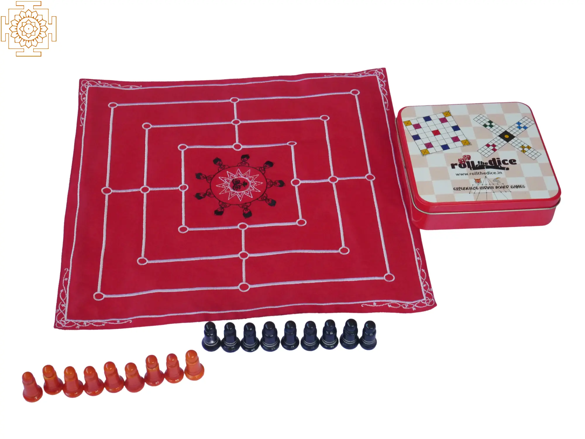More than just a game, Navakankari offers a connection to India's rich cultural heritage. The game board itself is a work of art, featuring symbolic motifs that hint at ancient traditions. Playing this game provides an opportunity to engage with history in a fun and interactive way, fostering an appreciation for the intellectual and social traditions of the past. Whether you're a seasoned board game player or new to the world of traditional Indian games, Navakankari promises an enjoyable and enriching experience that transcends generations. Gather your loved ones and embark on a journey of strategy, skill, and shared moments with this captivating Navakankari set.