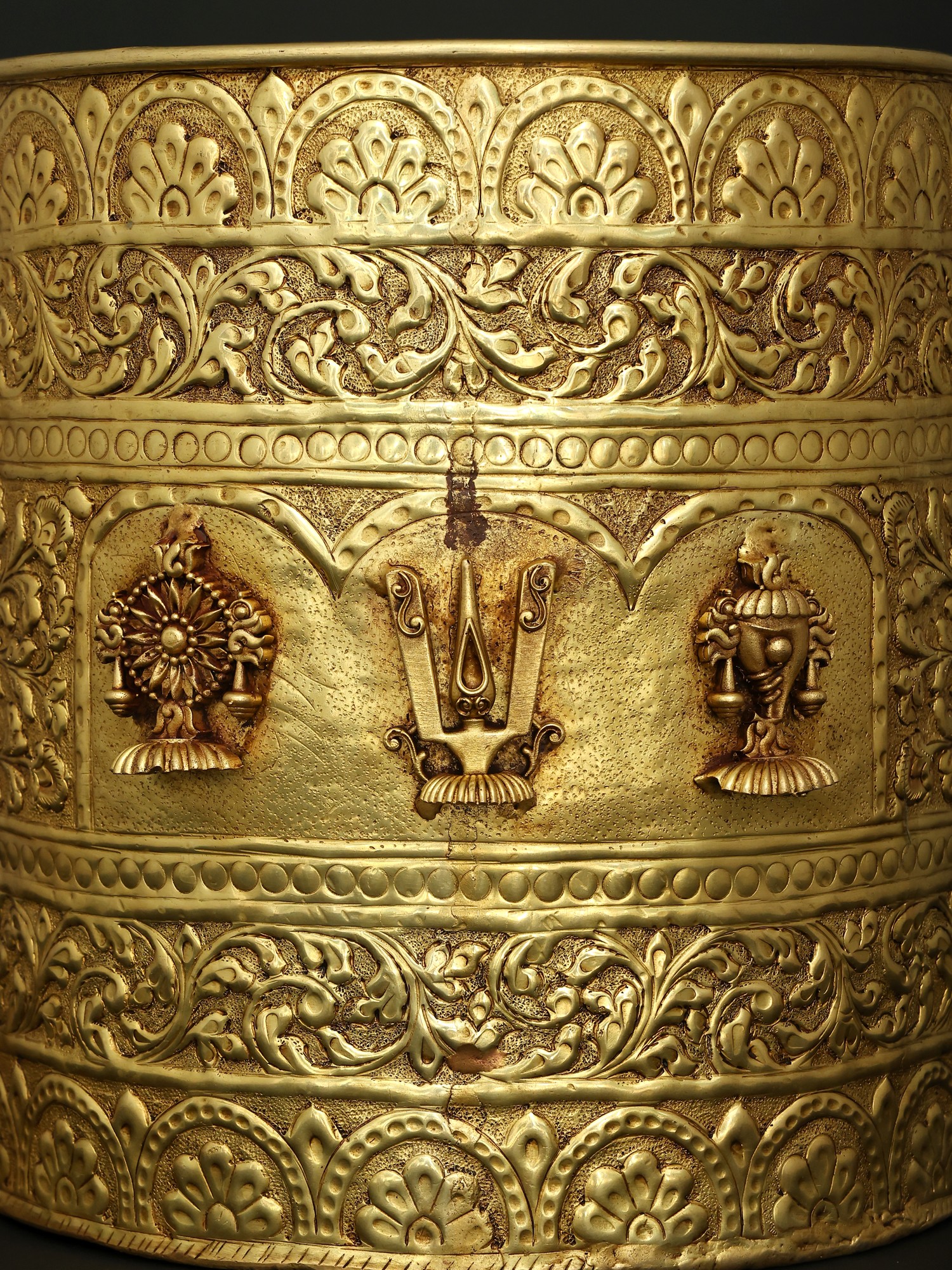 • Crafted from durable and lustrous brass, showcasing intricate embossed detailing.