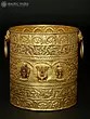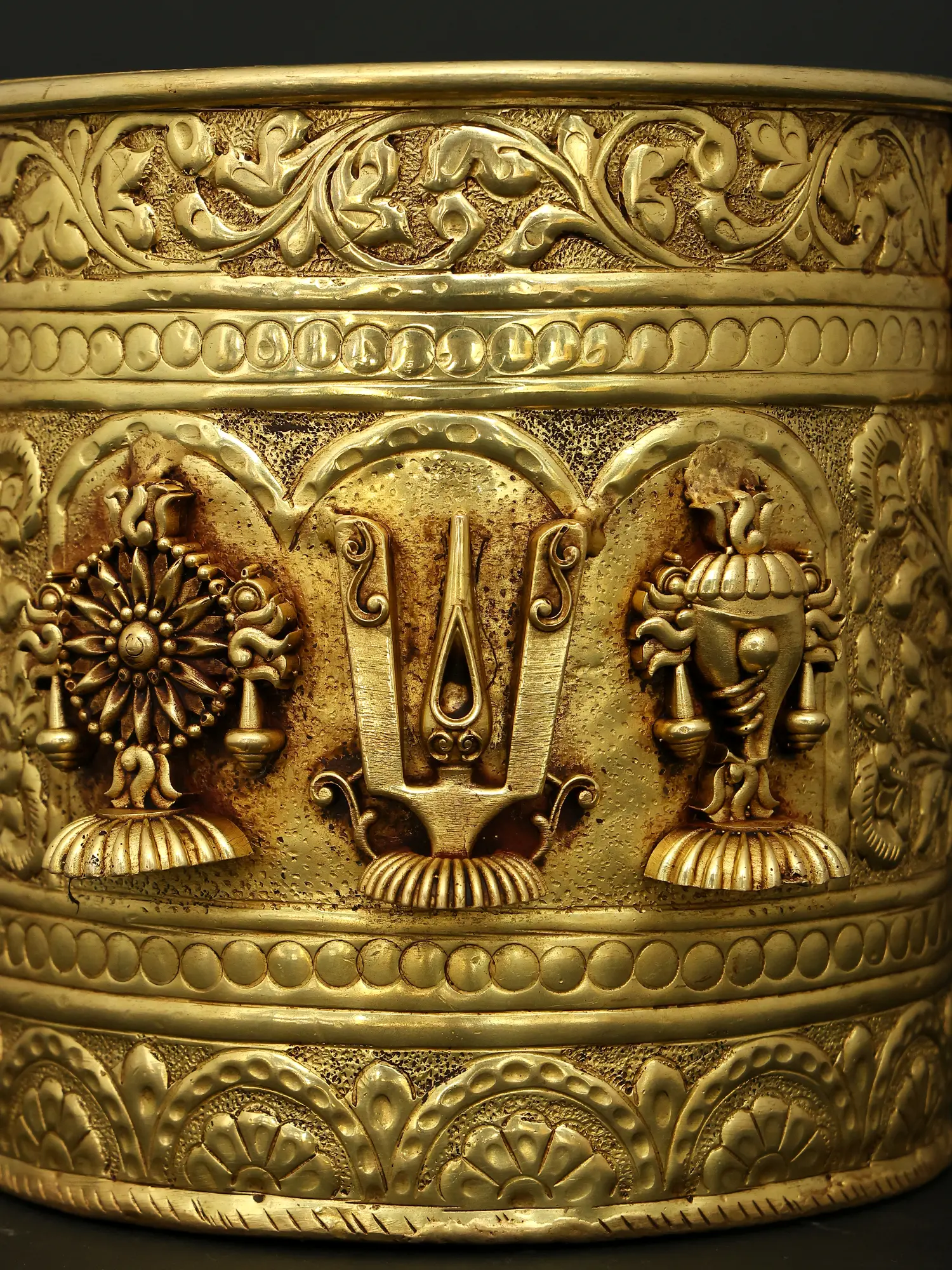 Ornate Brass Planter with Vaishnav Motifs - Shankh, Chakra, and Tilak