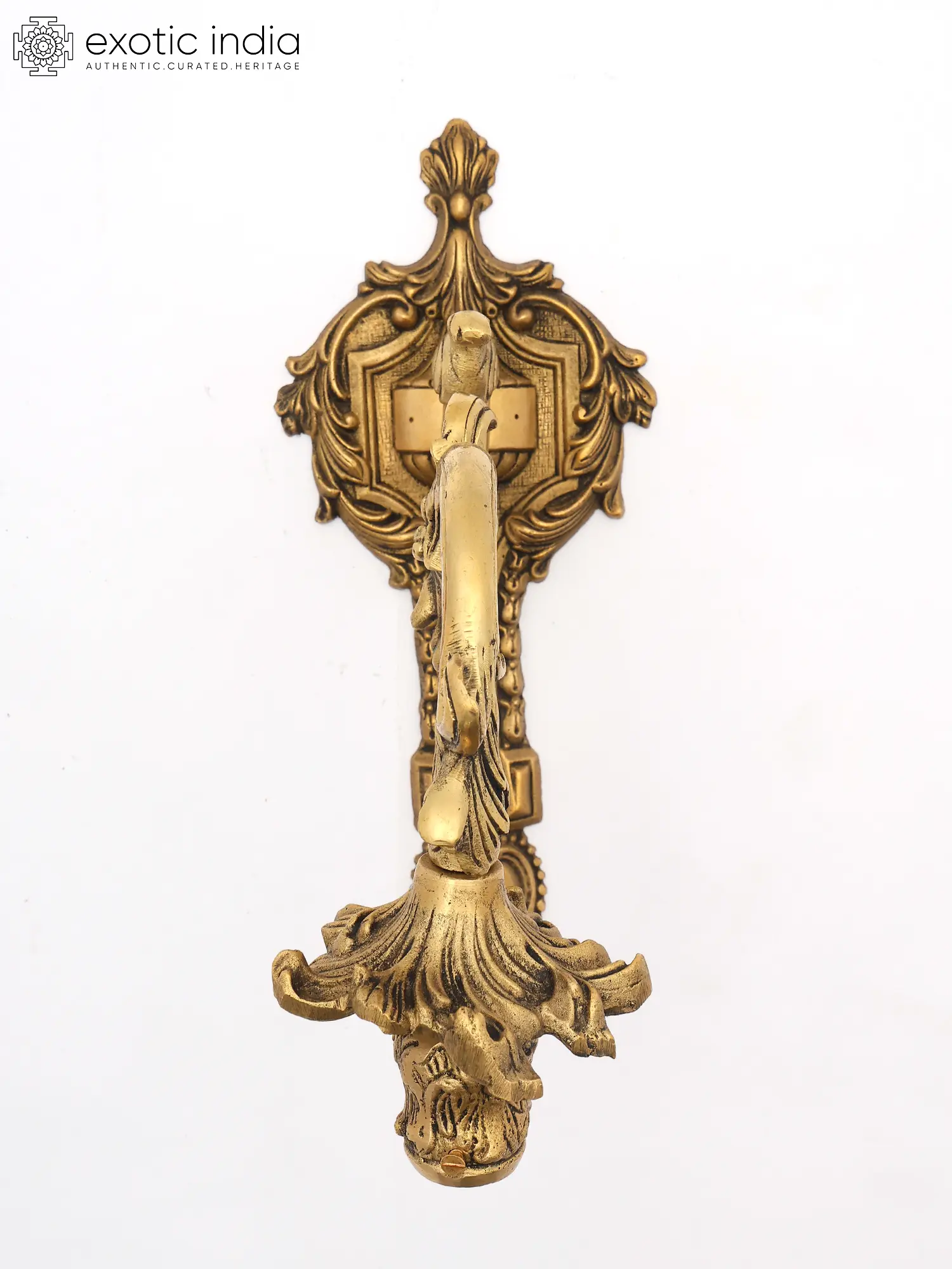 24" Brass Peacock Wall Bracket with Vaishnava Symbol (Conch) Hanging Lamp