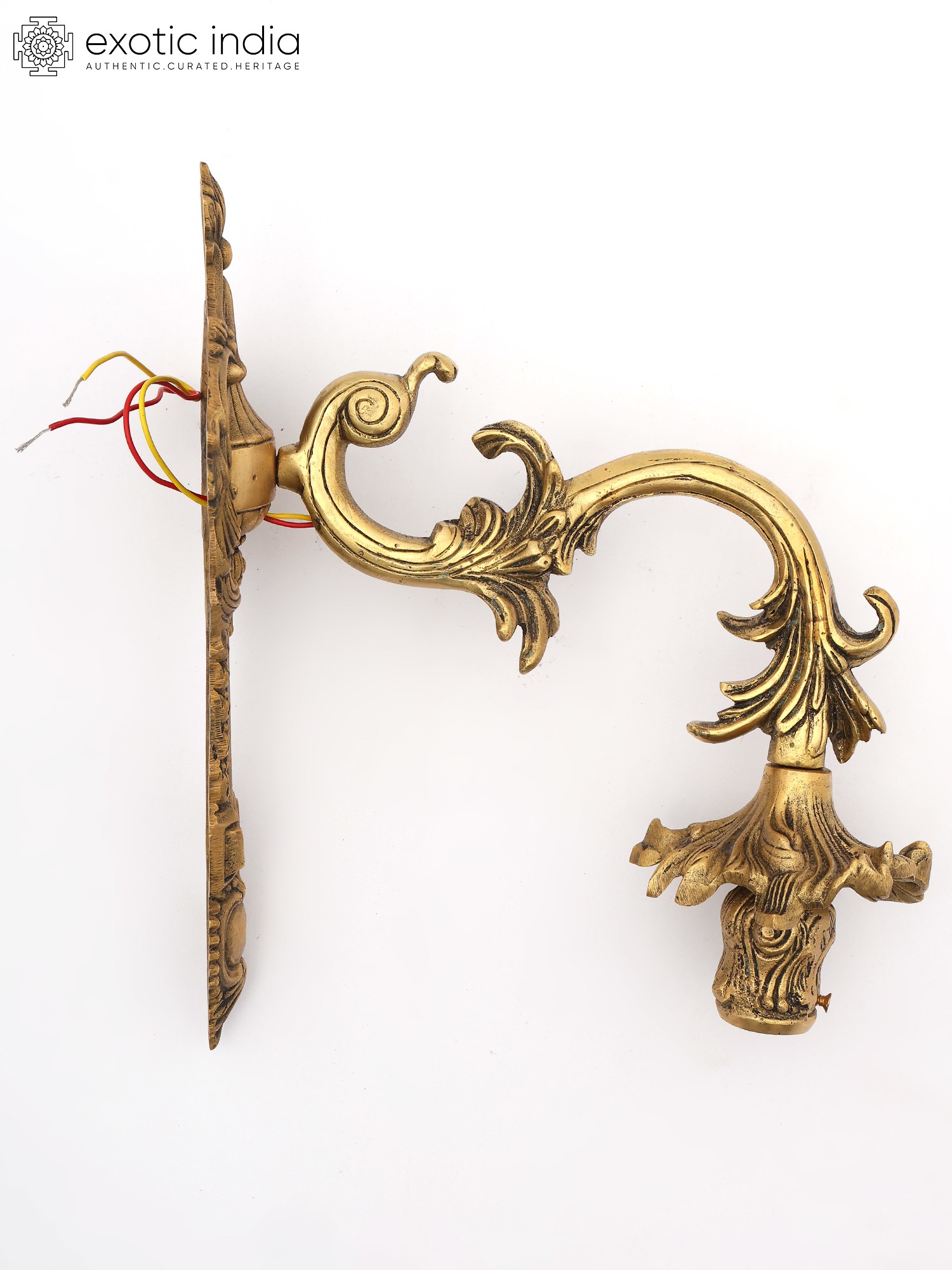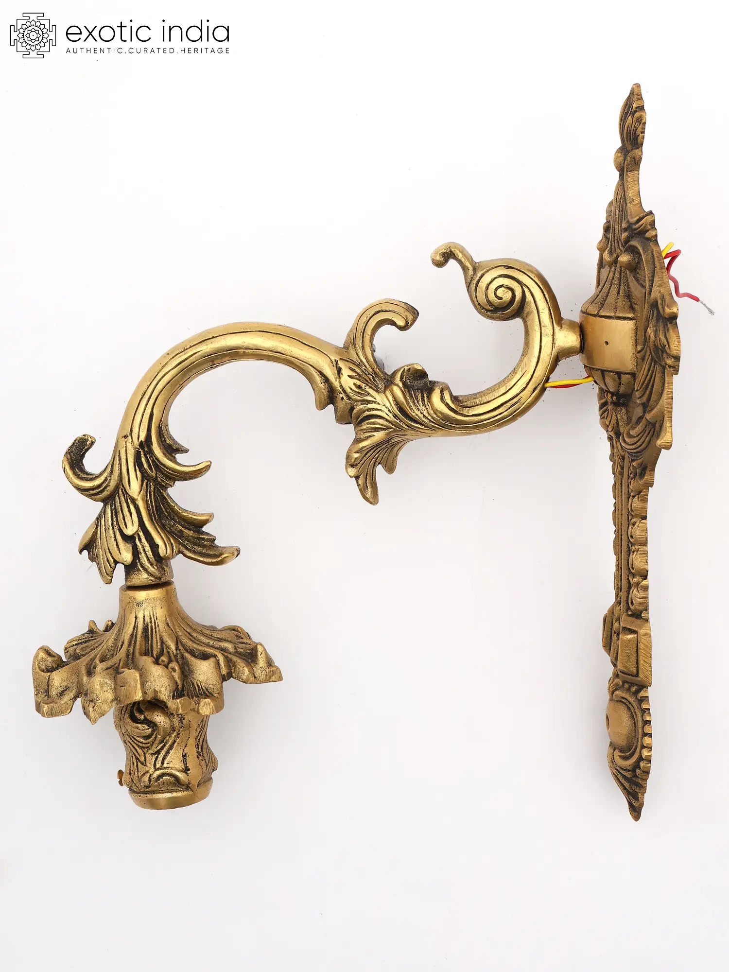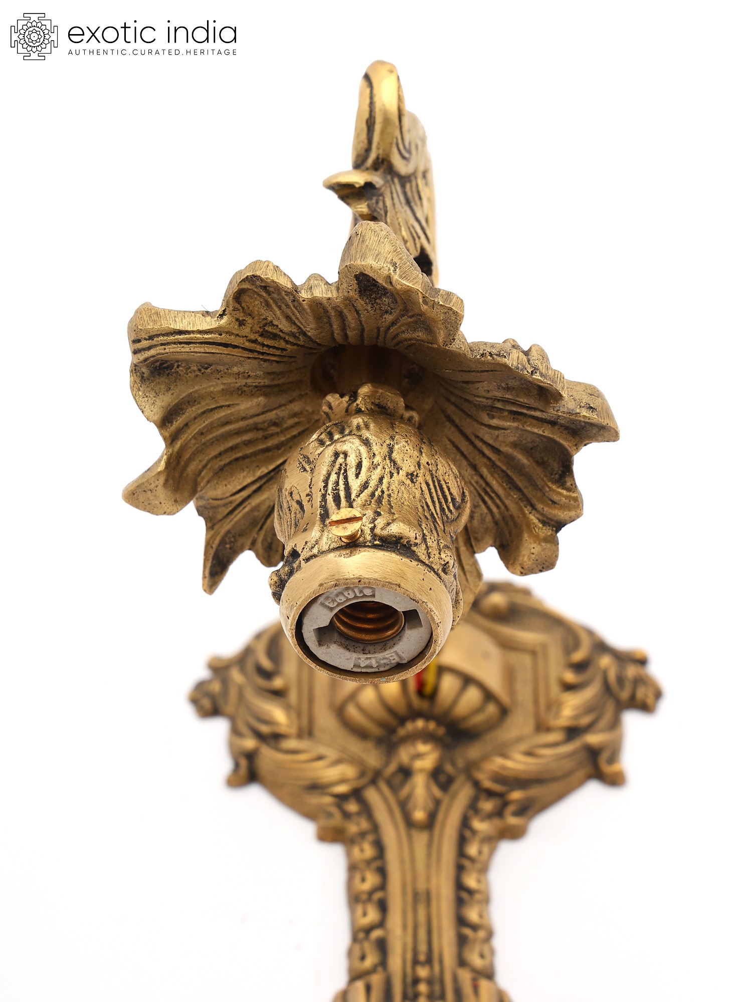 Designer Brass Wall Lamp Holder with Intricate Detailing and Electric Bulb Socket