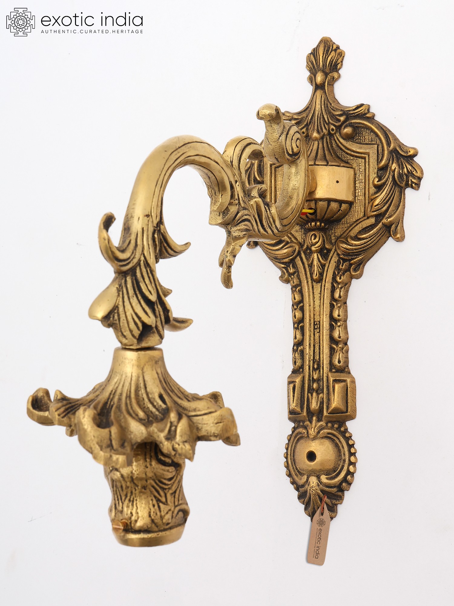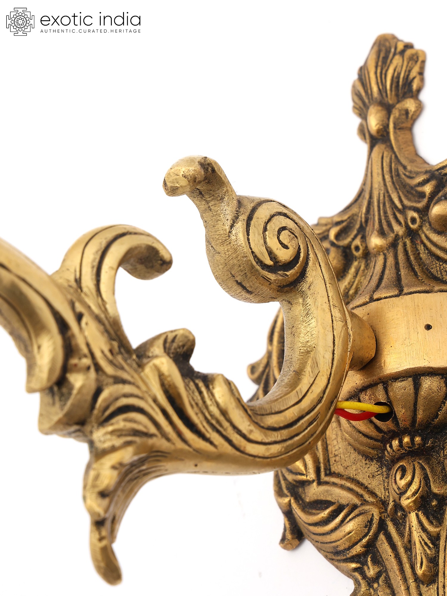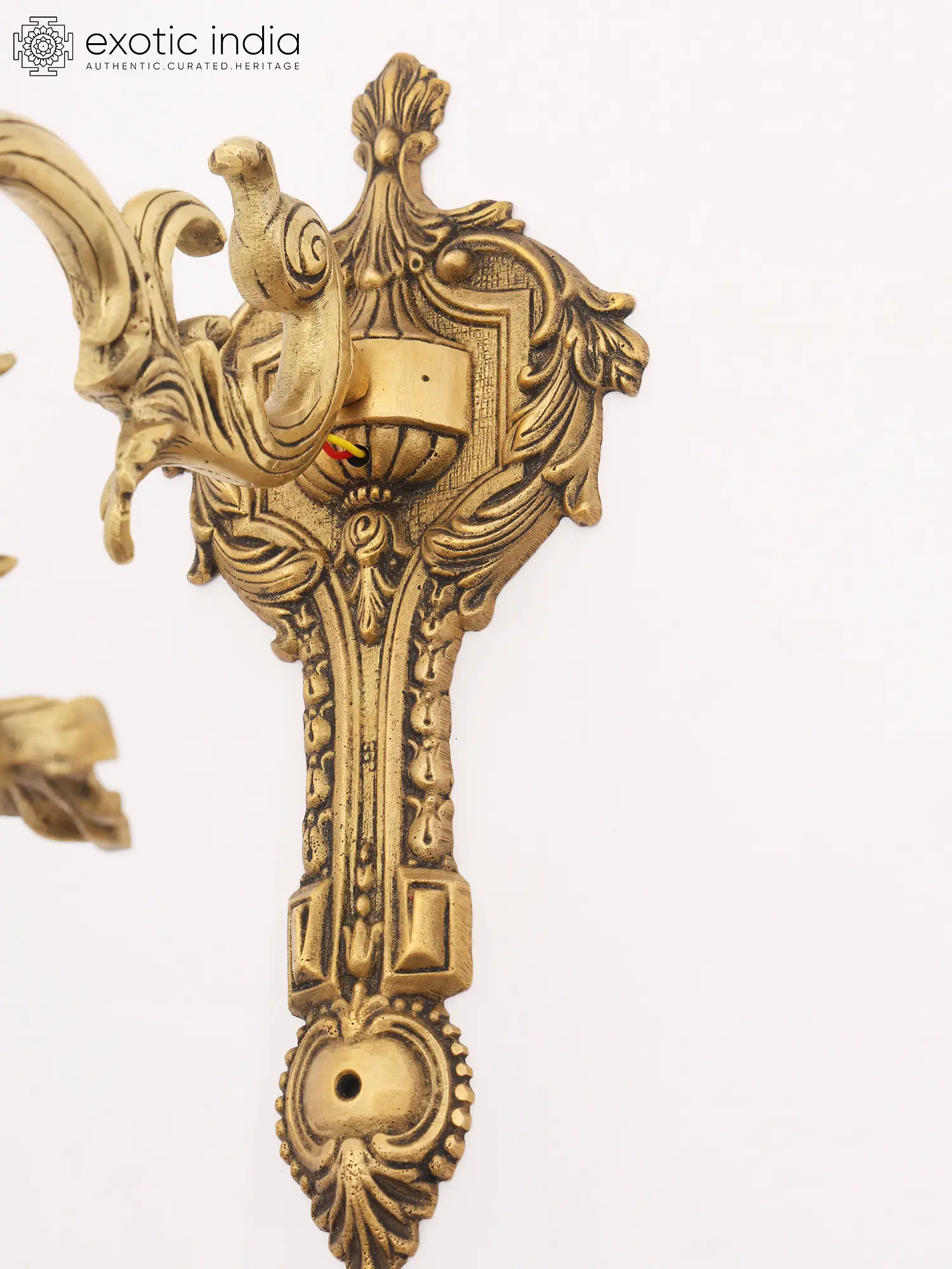 Designer Brass Wall Lamp Holder with Intricate Detailing and Electric Bulb Socket